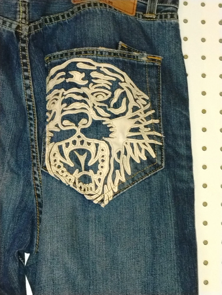 Size 36 pants -FREE shipping included The jeans are pre-owned but in good condition. There's no snags, tears, rips, stains or odd oders. Please review the pictures before purchasing the jeans. Measurements Approximately 17" In waist Approximately 32" In Inseam Approximately 12" In high rise