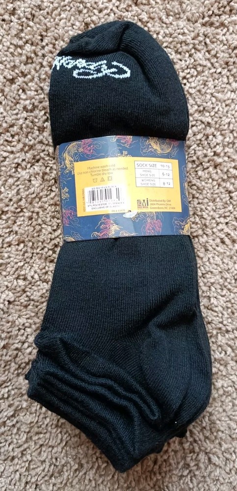 Ed Hardy Men's Low Cut Socks, Shoe Size 6-12 Solid Black 10 Pair NWT -New In Excellent Condition No Rips Or Stains Never Worn Men's Size 6-12 Women's Size 8-12