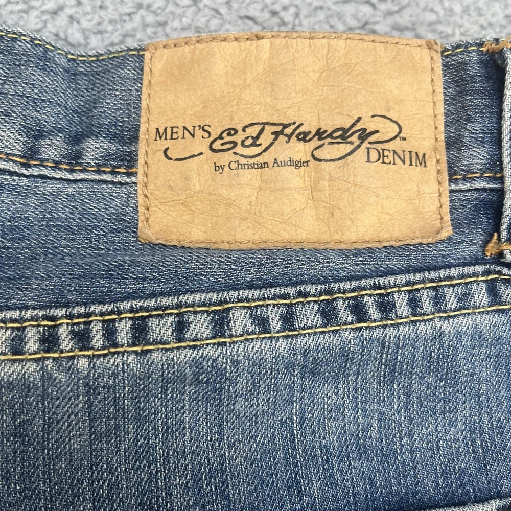 Ed Hardy Denim Jean Shorts Men’s Size 34 Christian Audigier Inseam 13.5”. Actual measurements may vary from the tag. Please measure your favorite garment to ensure a proper fit. Free returns for domestic buyer. Item must be the same condition as it was delivered for a refund.