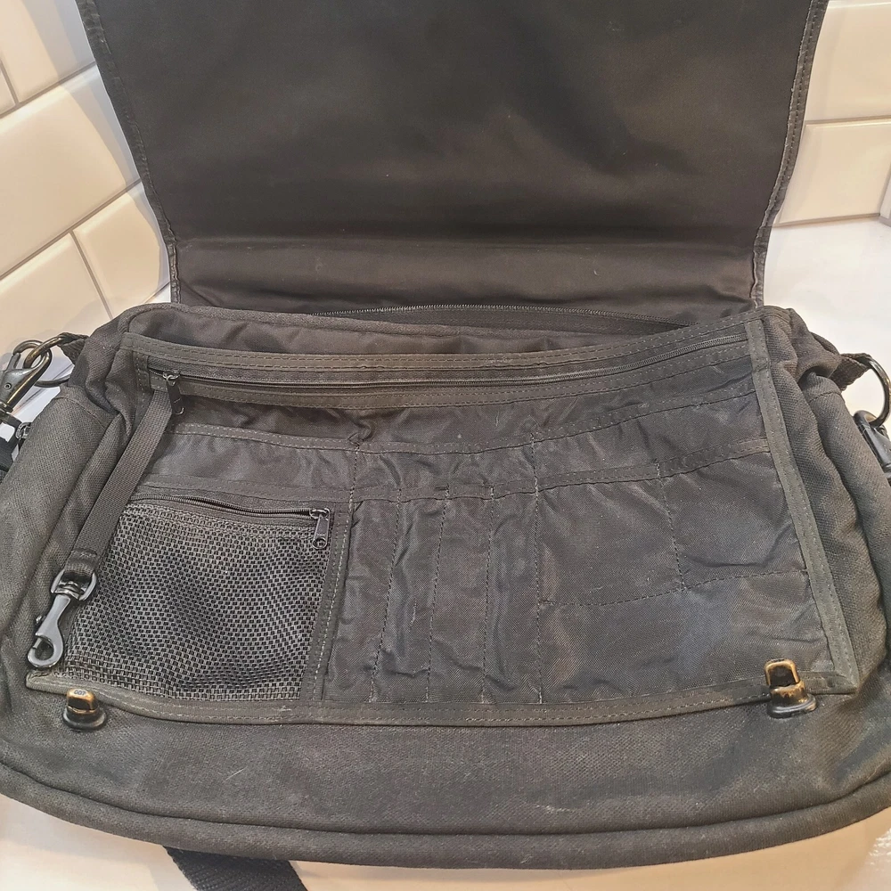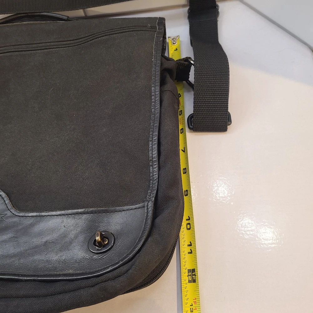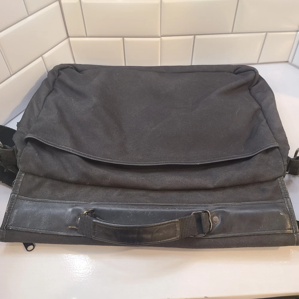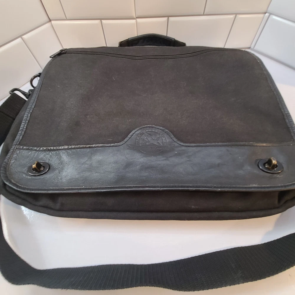 Country/Region of Manufacture: Taiwan Pattern: Solid Vintage: Yes Handle/Strap Material: Leather Occasion: Business Style: Messenger Bag Department: Men Color: Black Material: Canvas Closure: Zip Year Manufactured: 1990-1999 Size: Medium Brand: Eddie Bauer Theme: 90s Features: Adjustable Strap, Convertible, Detachable Strap, Folding, Inner Pockets, Organizer, Outer Pockets, Pockets, Water Resistant