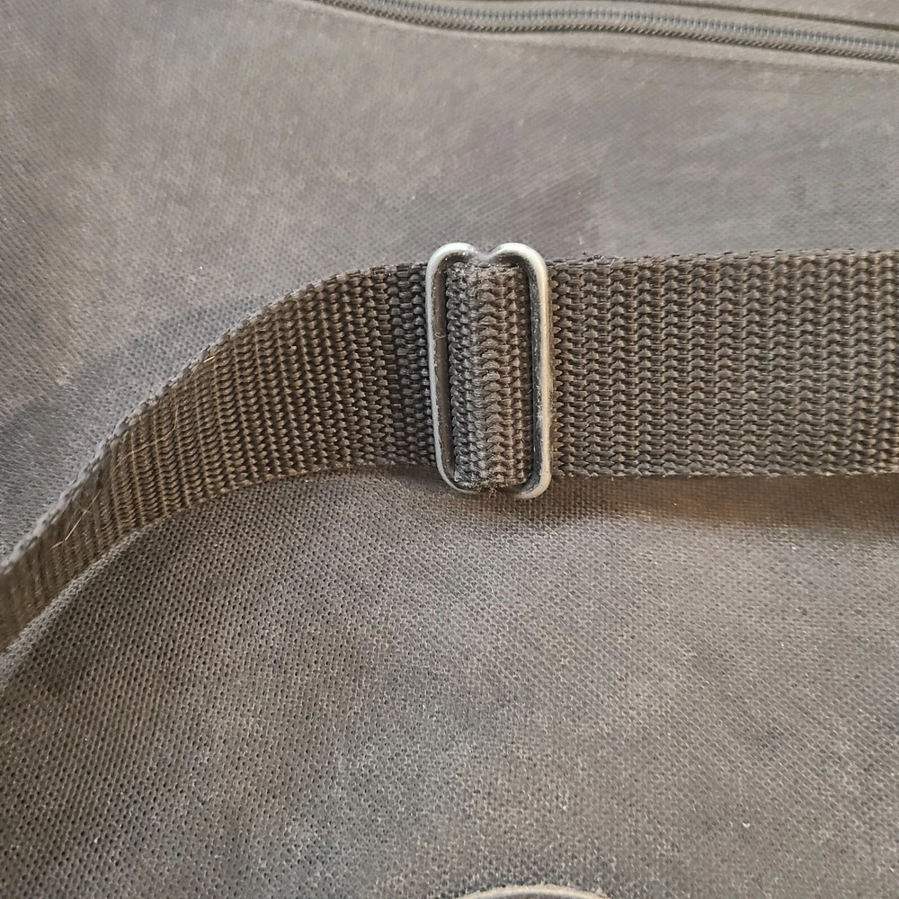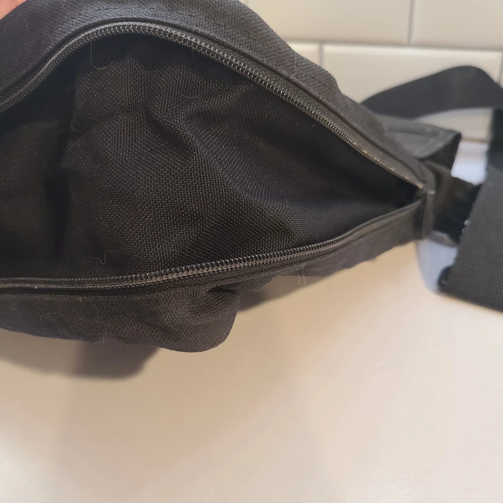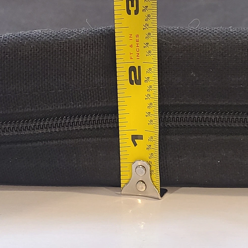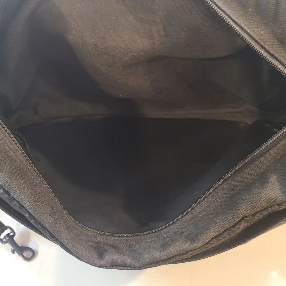 Expandable from 2.5 in depth to 5 in depth via zipper. In good condition. A little bit of wear and dust. See pictures and please let me know if you have any questions.