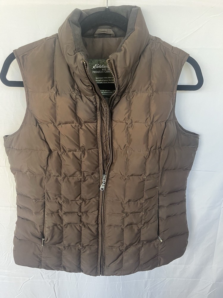 Eddie Bauer Down Puffer Vest Womens Medium Full Zip Quilted Brown Quilted L:23 PTP:19