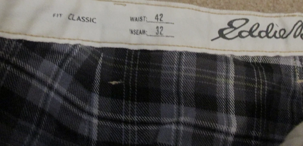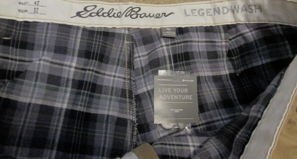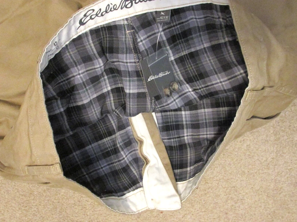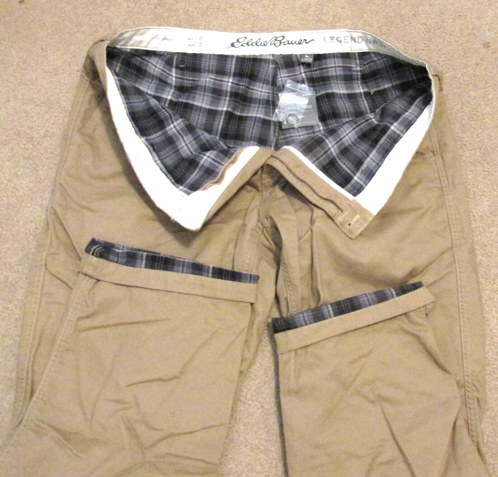 Eddie Bauer Flannel Lined Pants Mens 42-32 Classic Fit Khaki Beige Legend Wash NEW w/Tag