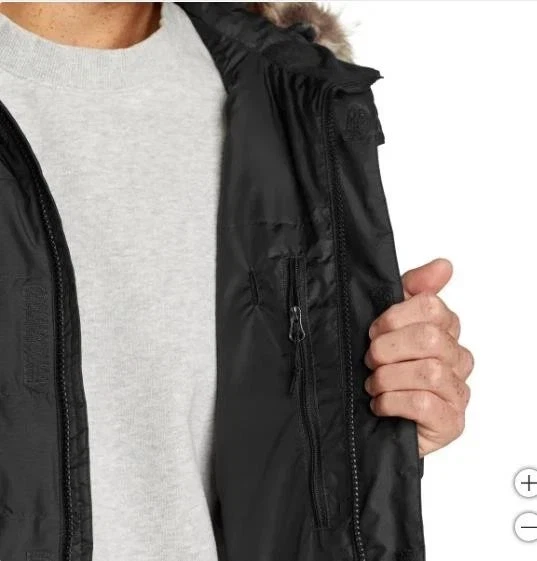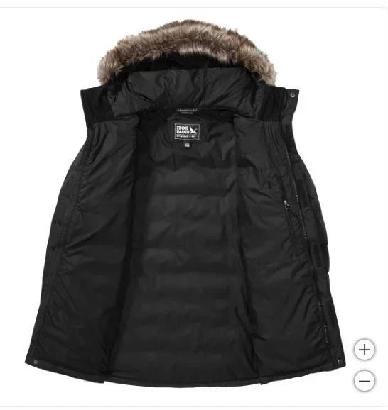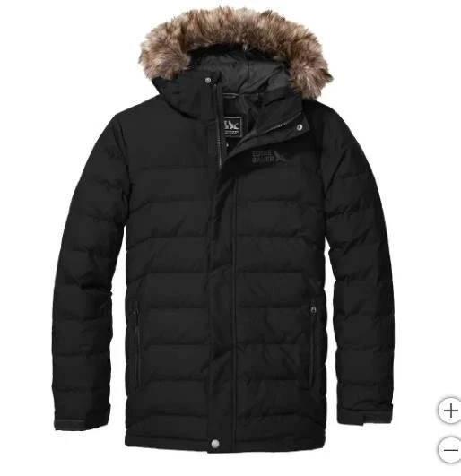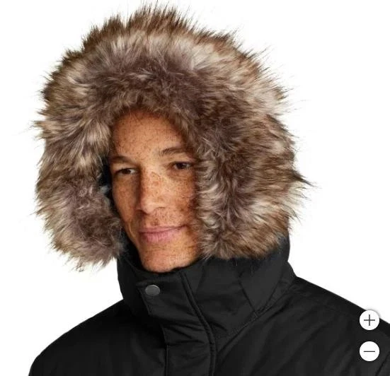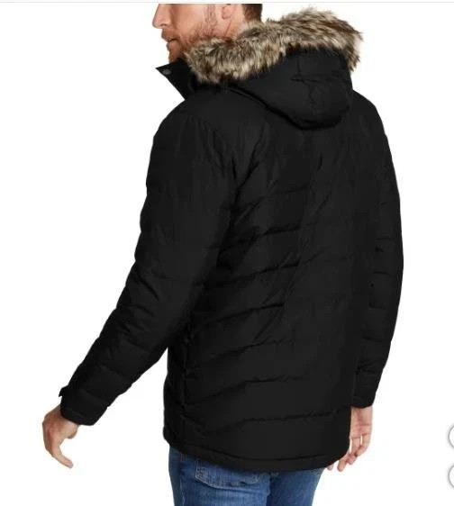 Eddie Bauer Men's Boundary Pass Down Parka Faux-Fur Jacket Size: Large Color: Black Content: 100% Polyester