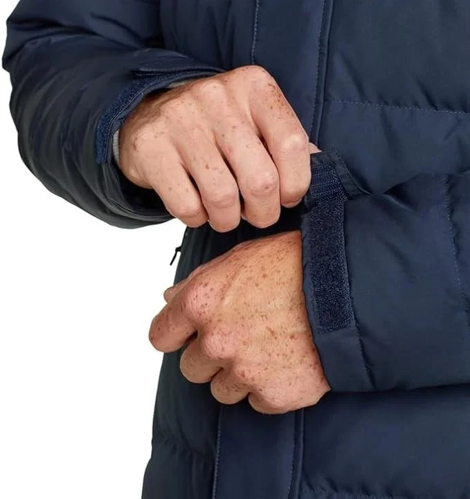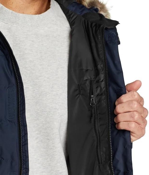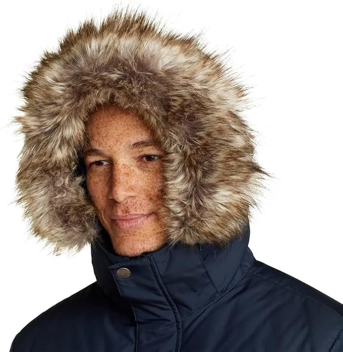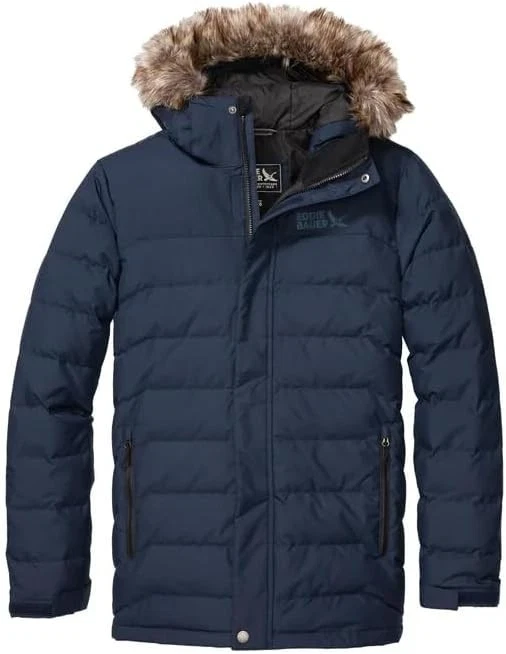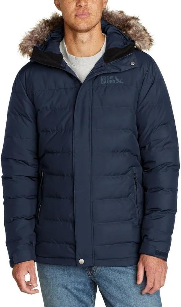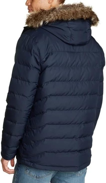 Eddie Bauer Men's Boundary Pass Down Parka Faux-Fur Jacket Size: Large Color: Blue Content: 100% Polyester