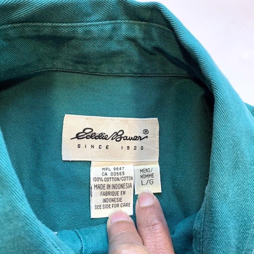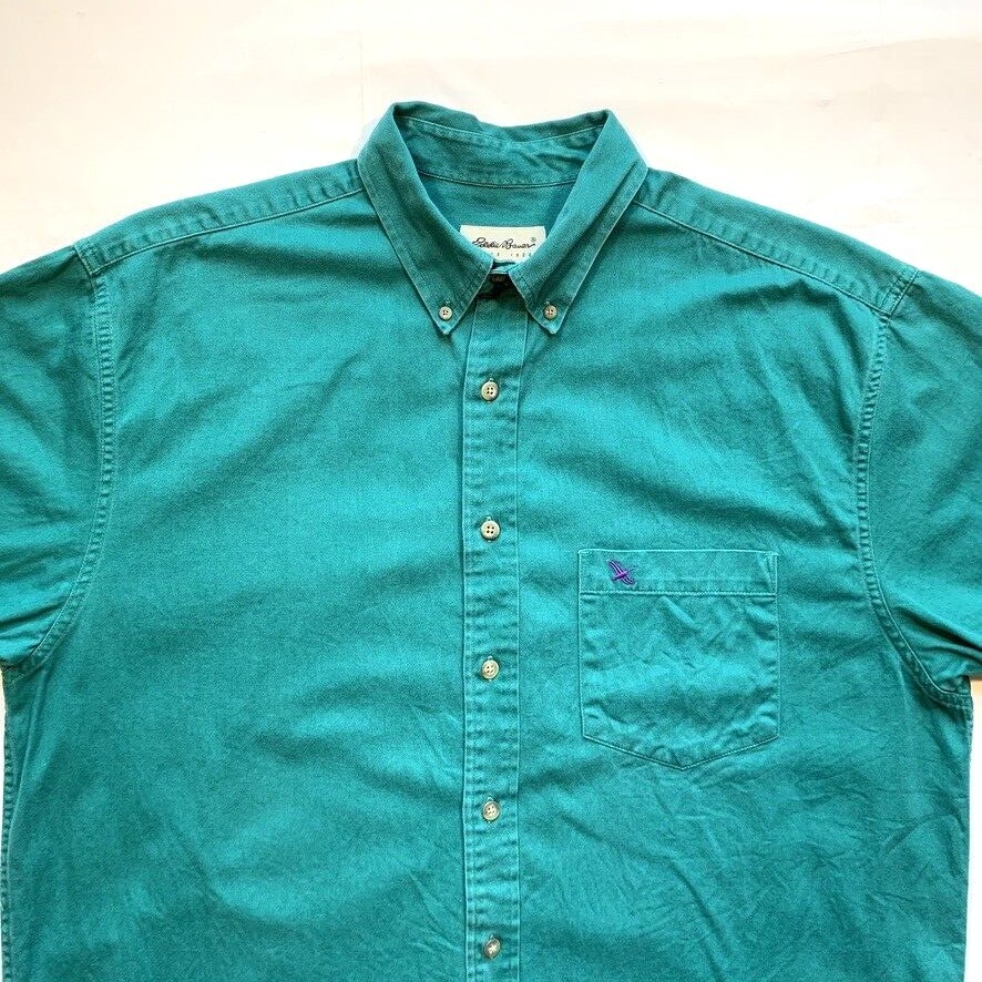 Eddie Bauer Shirt Mens Large Button Down Short Sleeve Twill Green Beach Summer Condition: Very good condition. Please see all photos for condition and measurements. Please let us know if you have any questions. Thanks for shopping with us.