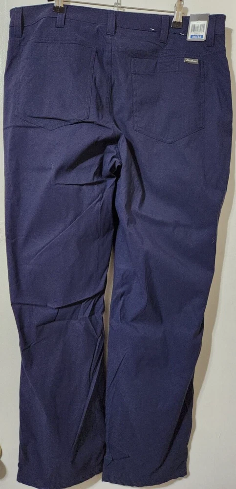 Rise: Mid (10-12 in) Country/Region of Manufacture: Sri Lanka Material: Nylon, Spandex Inseam: 32 in Type: Pants Personalize: No Size: 36 Garment Care: Machine Washable Occasion: Casual, Party/Cocktail, Travel, Workwear Features: Anti-Microbial & Anti-Odor, Belted, Breathable, Comfort, Easy Care, Lightweight, Lined, Moisture Wicking, Pockets, Quick Dry, Stretch, Water Resistant, Windproof, Wrinkle Resistant Accents: Button, Embroidered, Logo, Zipper Model: Zion II Front Type: Flat Front Style: Chino Leg Style: Straight Pattern: Solid Waist Size: 32 in Season: Fall, Spring, Summer, Winter Brand: Eddie Bauer Theme: Hippie, Nature, Peace, outdoor, camping, hiking, fishing, trail, mountain, backpacking, L.L. Bean, Patagonia, Organic, North Face, active, gorpcore, casual, travel, everyday, utility Fit: Regular Handmade: No Vintage: No Department: Men Size Type: Regular Closure: Button, Zip Color: Blue Pocket Type: 5-Pocket Design, Cargo Pocket Product Line: Eddie Bauer Mens Outdoor Wear Fabric Type: Fleece