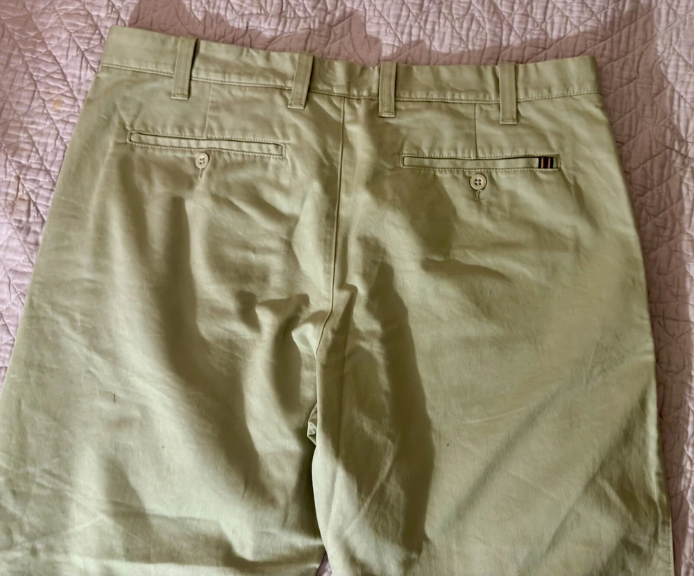 Elevate your wardrobe with these Eddie Bauer Legend Wash Chino pants in beige. Complete with a zip closure and flat front design, these classic fit pants are perfect for any occasion, whether it's a wedding, cocktail party, or formal event. Made from high-quality cotton canvas fabric, these pants are not only stylish but also comfortable to wear, with features such as pockets to keep your essentials close at hand. New with tags and in perfect condition With a waist size of 38 inches and inseam of 30 inches, these pants are a regular fit and have a straight leg style. The accents of buttons and zippers add extra flair to these solid patterned pants. The theme of these pants is American classic, making them a perfect addition to any wardrobe.