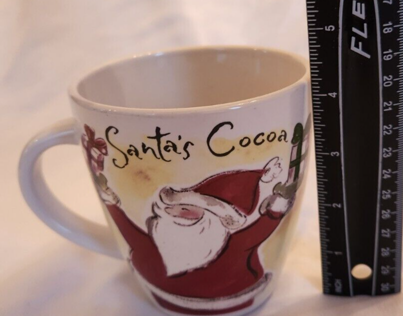 The Eddie Bauer Santa Cocoa Mug is a multicolor ceramic mug featuring a Santa character, perfect for enjoying hot or cold beverages during the Christmas season. This licensed reproduction mug is designed for a single serving, making it a festive addition to your collection of dinnerware and serveware.