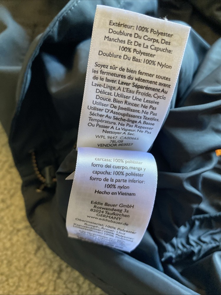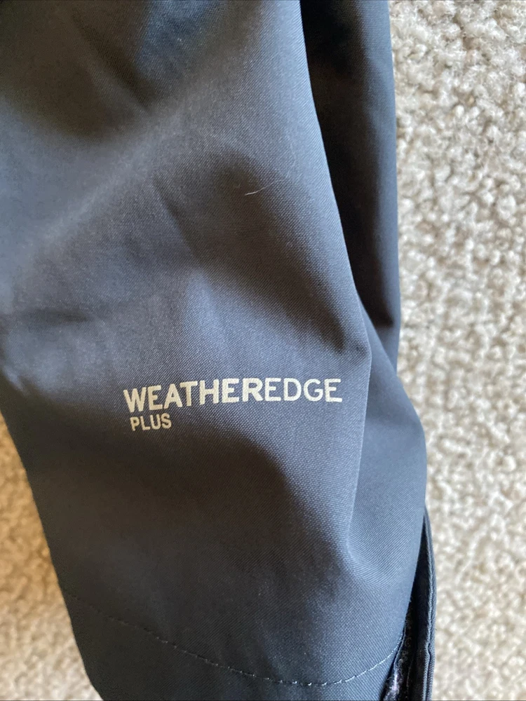 Eddie Bauer WeatherEdge jacket in grey. Double zipper. See photos. No major defects. Some minor lint in some of the Velcro, but nothing major. AI description below. The Eddie Bauer WeatherEdge Plus Jacket is a men's 2XL parka style jacket made of polyester. It features a hood, snap closure, and a zip pocket for added convenience. The jacket is designed for weather protection, making it a practical and stylish choice for outdoor activities in colder climates. The gray color adds versatility to the jacket, making it easy to pair with various outfits.