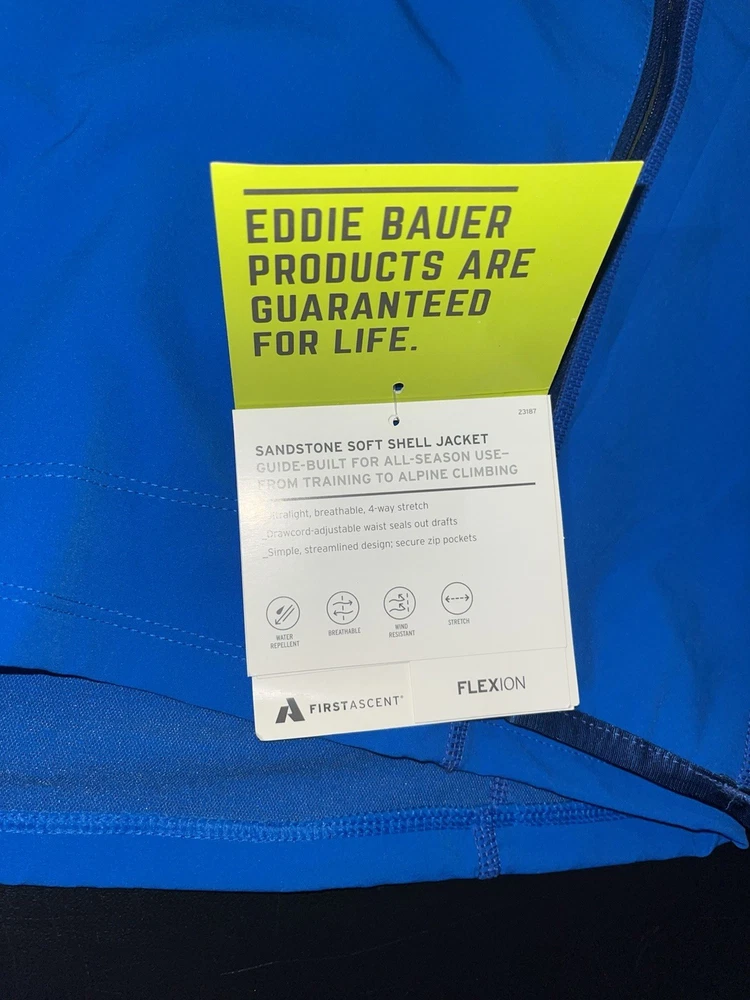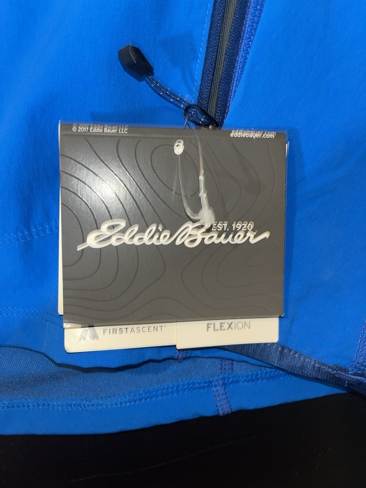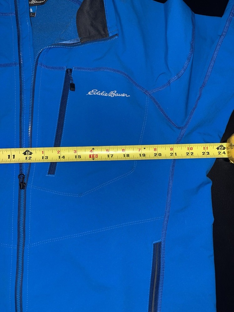 Model: Eddie Bauer WeatherEdge Fabric Type: Softshell Style: Windbreaker Type: Jacket Size Type: Regular Department: Men Features: Full Zip Theme: Outdoor Brand: Eddie Bauer Color: Blue Outer Shell Material: Polyester Size: XL Performance/Activity: Hiking