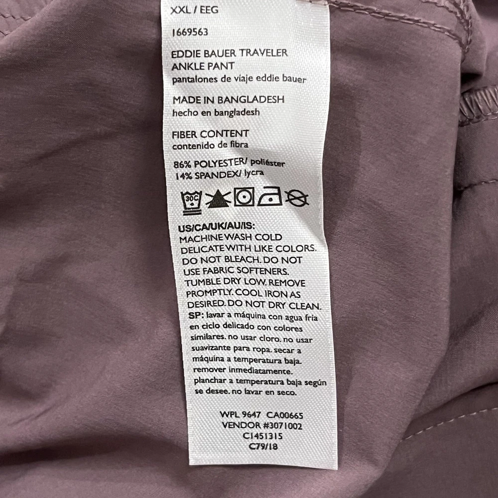 These Eddie Bauer Women's Size XXL Ankle Pants in Mauve Pink are designed for travel with a lightweight fabric blend of polyester and elastane. The pants feature a pull-on closure, solid pattern, and UPF50+ protection, making them suitable for outdoor activities in all seasons. The straight leg style and mid-rise fit offer comfort and modern style, while the waistband measures 22" across the front. Easy to care for as they are machine washable, these pants are a versatile addition to any woman's wardrobe, perfect for on-the-go adventures.