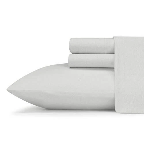 Eddie Bauer - Twin Sheets, Breathable Bedding Set, Lightweight Home Decor for Warm Sleepers (Jersey Knit Grey, Twin) Like your favorite sweatshirt, the Eddie Bauer jersey sheet is super soft and extra cozy. Perfectly pairs with your favorite Eddie Bauer bedding. Sheet sets are available in blue, grey and white to match any bedroom décor. this sheet set is 52% polyester/48% cotton, woven to be lightweight, yet durable. Packaged in a reusable jersey knit draw-string bag. The set includes 1 flat sheet, 1 fitted sheet and 2 shams (1 sham for the twin set). Machine washable, for easy care. Cotton blend; 52% polyester/48% cotton- long staple premium fabric, natural and breathable Jersey sheets are knit cotton- woven to be lightweight, yet durable; super soft and cozy, perfect for warm sleepers; single needle stitch detailing throughout Set includes a fully elastic fitted sheet- premium elastic installed all-around to keep the fitted sheet in place; deep pocket: 15" fitted sheet pocket depth (12" for twin sizes) - fitted sheet fits mattress up to 18" (up to 15" for twin sizes); pillowcas Twin sheet set includes flat sheet, fitted sheet and 1 standard pillowcase; full sheet set includes flat sheet, fitted sheet and 2 standard pillowcases; queen sheet set includes flat sheet, fitted sheet and 2 standard pillow cases; king sheet set includes Twin set measures: flat sheet- 66"w x 96"l, fitted sheet- 39"w x 75"l, standard pillowcase- 20"l x 30"w; twin-xl set measures: flat sheet- 66"w x 96"l, fitted sheet- 80"l x 39"w, standard pillowcase- 20"l x 30"w; full set measures: flat sheet- 81"w x 96"l, fitted sheet- 54"w x 75"l, standard pillowcases- 20"l x 30"w; queen set measures: flat sheet- 90"w x 102"l, fitted sheet- 60"w x 80"l; standard pillowcases 20"l x 30"w; king set measures: flat sheet- 108"w x 102"l, fitted sheet 78"w x 80"l, king pillowcases- 20"l x 40"w The coordinating pillow cases offer a bagstyle closure, highlighting a more traditional style with a simple, draped look Standard 100 by oeko-tex® certified Machine wash and rinse in cold water, gentle cycle with mild detergent This eddie bauer jersey knit sheet set features a solid pattern in heather grey The jersey knit sheet set coordinates beautifully with any eddie bauer bedding set