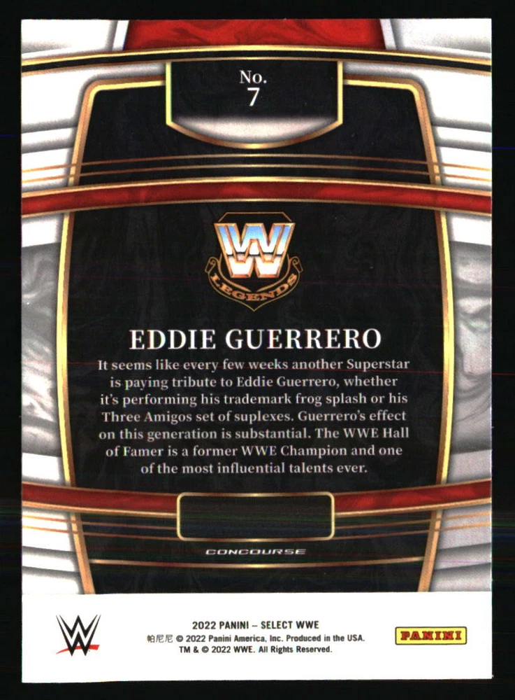 Graded: No Team: Unknown Season: 2022 Set: 2022 Panini Select WWE Card Number: 7 Type: Sports Trading Card Year Manufactured: 2022 Sport: WRESTLING Manufacturer: Panini Autographed: No Player|Athlete: Eddie Guerrero