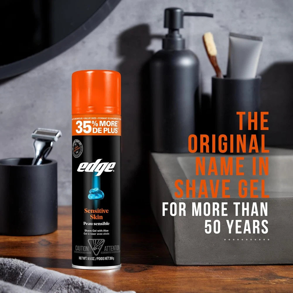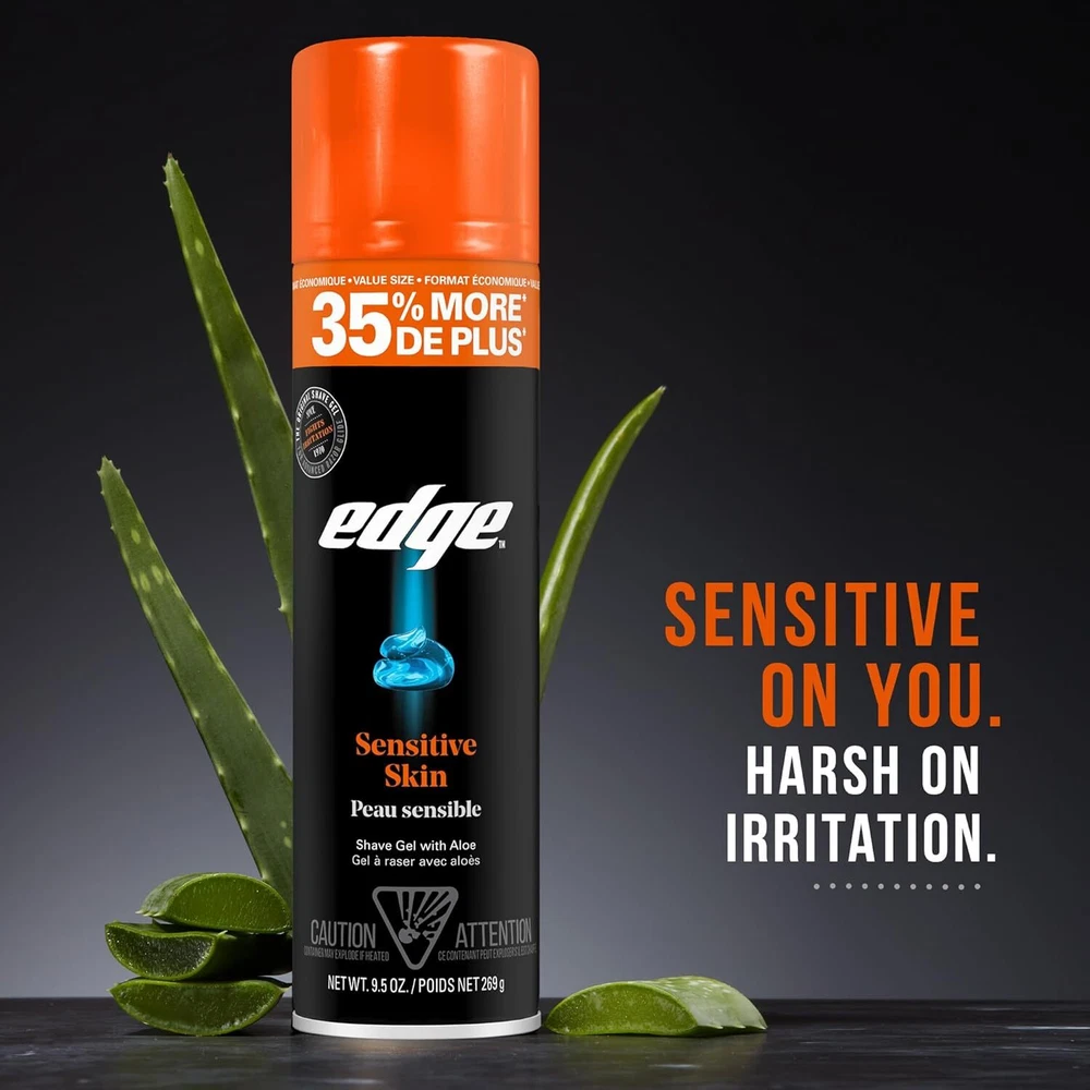 Edge Shaving Gel for Men, 9.5oz, 2 Pack Mens Shave Gel with Aloe, Mens Shaving Cream Sensitive Skin Shave Gel - Moisturizes, Protects, and Soothes Product Details Product Dimensions : 2 x 4 x 8.38 inches; 1.19 Pounds Manufacturer : Edgewell Personal Care Brand: Edge Item Form: Gel Skin Type: All Age Range (Description): Adult Item Weight: 19 Ounces SENSITIVE SKIN PROTECTION: With Edge sensitive skin shaving cream for men, enjoy protection from nicks and cuts thanks to its effective formulation SOOTHING SHAVING EXPERIENCE: This ideal shave cream for men reduces skin irritation, providing a calming, soothing shaving gel experience ALOE-ENRICHED FORMULA: Our shaving gel sensitive skin formula adds aloe and lubricants into your shower products, delivering moisturization and a smooth razor glide for an effortless shaving experience ENHANCED RAZOR GLIDE: Edge sensitive skin shave gel boosts razor performance with lubricants that assure a smoother glide, protecting and soothing your skin throughout the shave REFRESHING AND INVIGORATING: Experience a revitalizing post-shave freshness with cooling conditioners that refresh and revitalize, leaving your skin feeling smoothly invigorated with this shaving cream mens sensitive skin Edge Shave Gel for Men is a standout product in men's hygiene products, specifically designed for sensitive skin with its shaving gel formula. This sensitive shaving cream offers a great shaving experience, protecting delicate skin from nicks and cuts. As part of your everything shower essentials, this mens shave cream foam stands out with its unique combination of efficiency and care, great for those who prioritize beauty and personal care. Designed to serve as a men's shaving cream, this shaving foam for men reduces irritation and offers a soothing sensation. Specially formulated to be a superb shave gel for men, it contains aloe and lubricants that provide a smooth razor glide, providing both moisture and protection. In the realm of shower products, Edge Shaving Gel is a top-choice, akin to a sensitive shaving cream that lathers into a foamy shaving cream, enhancing the overall shaving experience. This men's shaving cream, when paired with a quality razor, serves as an alternative to traditional shaving foam. Experience rejuvenated skin post-shave, as this shave gel for men revitalizes and awakens your complexion.