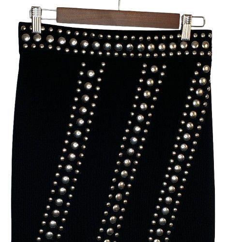Edgy Black Studded Western Pull-On Skirt for Women Size M Petite