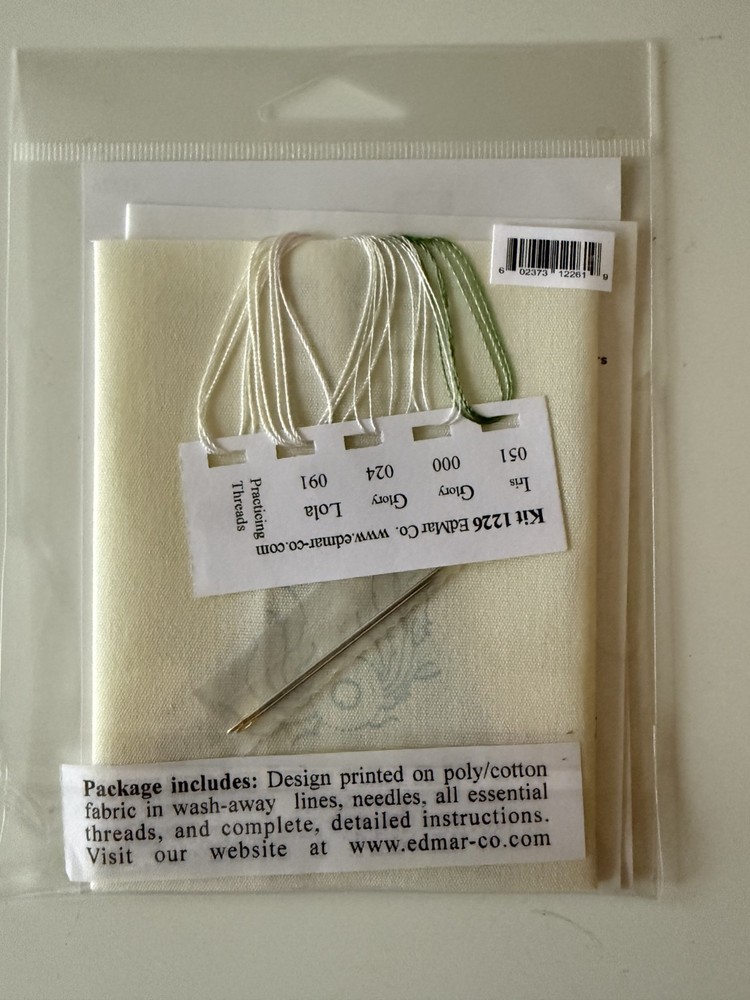Edmar Brazilian Embroidery Kit - Bullion Rose The art of Brazillian Embroidery Edmar's kits are split into four difficulty levels Level 1-Novice / Level 2-Advanced Beginner / Level 3- Intermediate / Level-4 Experienced Bullion Rose is a level 1 kit Edmar's all-natural rayon threads are produced in Meridian, Idaho and each kit is created with care. These all-in-one kits give you step-by-step instructions on how to do each stitch and the techniques used for traditional Brazilian Dimensional Embroidery. The fabric is cream with a printed design which washes away. The design is 2.25" x 2" and features Bullion Stitch for the flower. The cream coloured fabric is 17 x 17 cm / 7 x 7 inches, the design is 5.7 x 5 cm / 2.25 x 2. inches Available as a kit Your kit contains: cream coloured poly/cotton printed fabric, needles, threads sorted on to an organiser and full instructions Some more information on Brazilian Embroidery: Wikipedia says Brazilian embroidery is a type of surface embroidery that uses rayon thread instead of cotton or wool. It is called "Brazilian" embroidery because the use of high-sheen rayon thread in embroidery was first popularized in Brazil, where rayon was widely manufactured. Brazilian embroidery patterns usually include flowers formed using both knotted and cast on stitches. Rayon thread, which is smooth and shiny, makes it easier to pull the needle through the wrapped stitches, such as bullion stitches. Milliners needles, which have a straight shaft and an eye area no wider than the shaft, are usually used for the wrapped stitches that are frequently used in Brazilian embroidery. Mary Corbet says Brazilian Embroidery is a highly textured, dimensional embroidery that uses a variety of stitches to create floral and floral-related designs. What really sets Brazilian Embroidery apart from other types of surface embroidery is the use of specific threads. Brazilian Embroidery is always done with rayon embroidery floss, which is a z-twisted floss with a very high sheen. Stitches commonly used in Brazilian Embroidery include bullion knots, French knots, cast-on stitch, drizzle stitch, and pretty much any stitch that can be used to produce dimensional floral elements. Other stitches like stem stitch, fly stitch and feather stitch are often used for stems and background foliage.