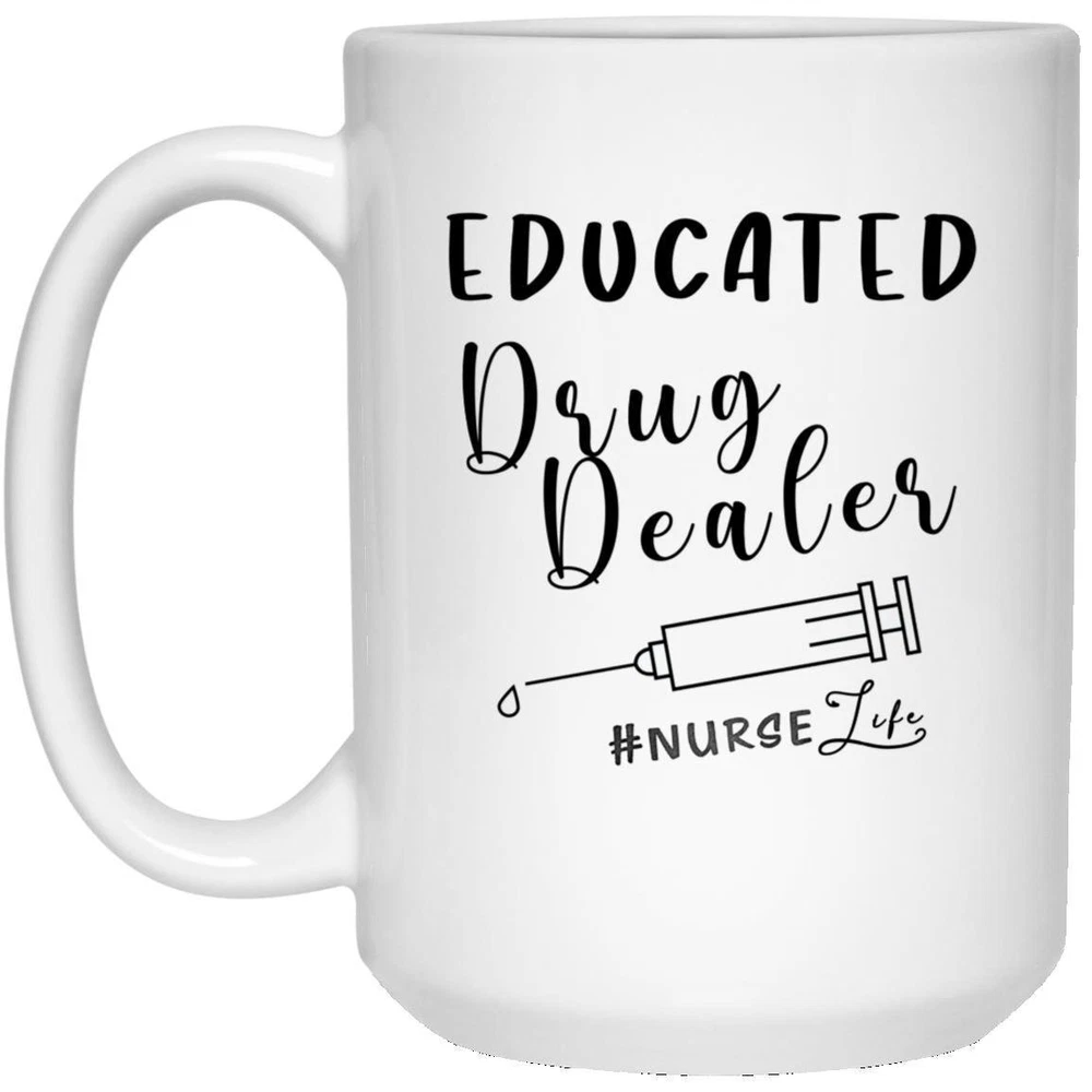 Educated Drug Dealer Funny Gift Best Nurse Gift Custom Nurse Mug Appreciation Product Details.. This high quality 11oz. ceramic white mug has a premium hard coat that provides crisp and vibrant color reproduction sure to last for years. Perfect for all hot & cold beverages. The highest quality printing possible is used. It will never fade no matter how many times you wash it. Material: 100% Ceramic. Print both sides. Dishwasher and Microwave Safe. High Gloss + Premium White Finish. Printed in the U.S.A. Personalized & Custom. We support personalized and custom mug to add custom, when placing an order, you can add notes to the "order note" in shipping address section. Also you can contact us directly via message. Shipping Info. Ready to ship in 1 to 2 business days, All products are made-to-order and proudly printed in the United States. Shipped by USPS and DHL, You will receive your order in 5-7 days. Replace & Refund. All products are defective during shipping broken, chipped will be replaced free of charge. You are not satisfied with the product, we will refund 100% money to you. If any other issues arise, please do not hesitate to message, we would be more than happy to assist you.
