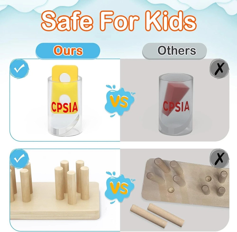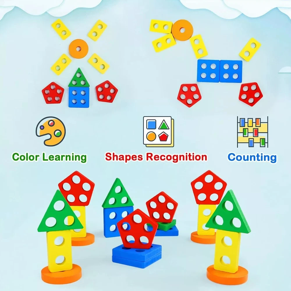 Wooden Educational Sorting and Stacking Toy - Learn Color and Shape Recognition – Puzzle Blocks Toy for Toddlers – Preschool Children Game – Kids Montessori Education Description Montessori Toy for Early Education: This wooden sorting and stacking puzzle contains 20 pieces including blocks of 5 colors and 5 geometric shapes. It helps to build early shape, color and size differentiation skills when babies try to match the blocks to the target or make various combinations. Learn Colors Shapes and Numbers: Kids can sort by shape,by color or by the numbers of holes for pegs. Toddler shape puzzle is perfect for your child to learn shape and geometry, build color recognition and exercise kids’ space conception as well as hand-eye coordination ability. Great toddler toys for 2 to 4-year-old boys and girls. Design for Baby: Perfectly sized for toddlers' hands and a great choice as travel toys. Your child will love the bright colors, the different geometric shapes, and the engaging design. What's more, the wooden puzzle has smooth edges, fitting nicely into their small hands. Perfect gift for 2 to 3-year-olds. High-quality Assurance: We insist on adopting high-quality craft and making delicate products attentively for toddlers. This learning toy is made of 100% non-toxic wood with water-based paint, and child-safe. The edges of the Stacking Geometric Board are smooth and won't hurt the baby's skin. Parents' Optimal Choice: It's nice to have a wooden toy that kids can learn while playing. This montessori toy makes the perfect and adorable Christmas / birthday gift for 2-3 year old boys and girls. Seller fullfilment Deliverd at your door step 5 to 6 business day