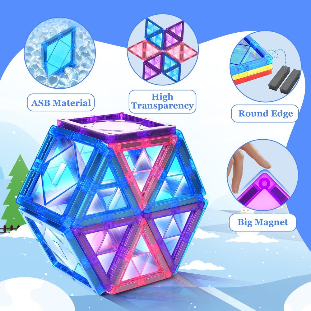 【SAFE DURABLE and STRONG MAGNET】 Zerxona blue magnetic building blocks toys for kids aged 3 4 5 6 7 8+ are made of high-quality non-toxic ABS material and super strong magnets. The edge of the magnetic tiles is more rounded and smooth, Highly recommended for 3-5 and 4-7 year old kids. 【STEM and PRESCHOOL TOYS】 These blue magnet tiles toys for toddlers 3-5 4-6 are the best choice for education and learning. Magnetic STEM toys can help teach kids valuable 3D spatial thinking, math, art, and tactile motor skills, and develop color recognition. The magnetic building Blocks toys for toddlers aged 3 4 5 6 7 8+ also rustle like little bells while playing with them, which will attract toddlers' attention and delight them. 【STEPPED UP TODDLER CREATIVITY】 The blue magnetic blocks toddler toys for children aged 3-4 and 4-8 stick together and what makes kids unique are hidden magnets for safe construction, increasing building possibilities for all ages. So even the ages of 3 4 5 6 7 8+ can imagine and create the buildings of their dreams. 【GREAT GIFTS】 The Blue magnetic tiles toys make great Christmas and Birthday gift toys for 3 4 5 6 7 8+ years old boys and girls. Let's invite our kids into a world of discovery with a set of building toys for kids ages 4-8 and 4-7. 【SATISFACTION GUAANTEED】 Our service concept concentrates on CUSTOMER FIRST. If you have any questions about your purchase or our service, please feel free to contact us, and we will provide a replacement service or refund service for you!