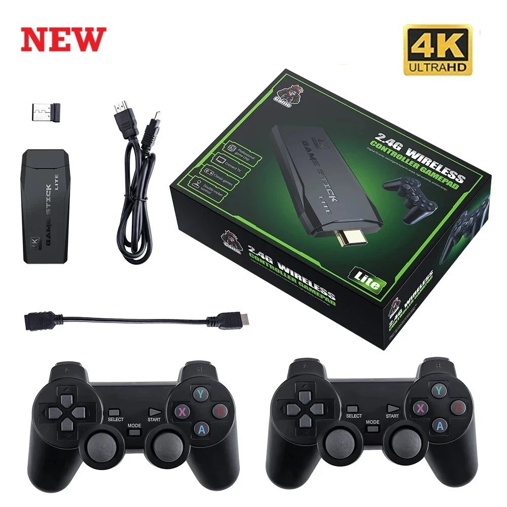 HD Output: Supports 4k Ultra HD TV video output (1080p/720p) and monitors and projectors with HDMI input. Support download games: This game console supports players to search for games, supports players to customize their favorite games, and can play and download games by themselves. Equipped with wireless dual joysticks to play all the great games, make you enjoy the game even more, let you remember and enjoy your childhood quickly! If you need a list of games, you can contact customer service for a list of games! 1. Game list, including For ps1/atari/mame/sfc/fc/gba/gb/gbc/md emulator games, total (32G) 3000+/(64G) 10000+ games 2. Game history, game registration list, classified by game entry time 3. Game collection, you can use the START button for three seconds to collect or collect your favorite games 4. Game search, based on complete English game or keyword query, the first Chinese letter matching game query 5. Game settings, key tone settings, view local files, restore default settings, system information, output settings 6. Smooth lines, simple and elegant design, plug and play, with wireless handle, the wireless control range is up to 8 meters. Compared with the short-wired wired handle, the wireless handle avoids getting close to the TV and protects your eyes more effectively. Mini host with wireless handle. 7. Just connect the game console to the interface of the TV, connect the USB power supply data cable to the console, adjust the TV source to the corresponding high-definition channel to display the game list screen on the TV, and put the handle into the battery for remote control, that is Plug and play, simple and elegant, easy to operate. 8. Packing size: 15*10*7cm 9. Weight: 380g 10. The product is not charged. When using it, put two AAA batteries into the handle. packing list: 1*Game console 2*Wireless handle 1*Wireless signal receiver 1*USB charging cable 1*Memory card package (optional 32G/64G) 1*HD signal extension cable 1*English manual 1*Packaging color box