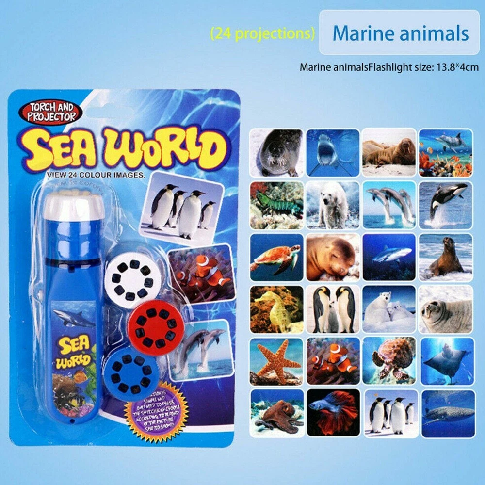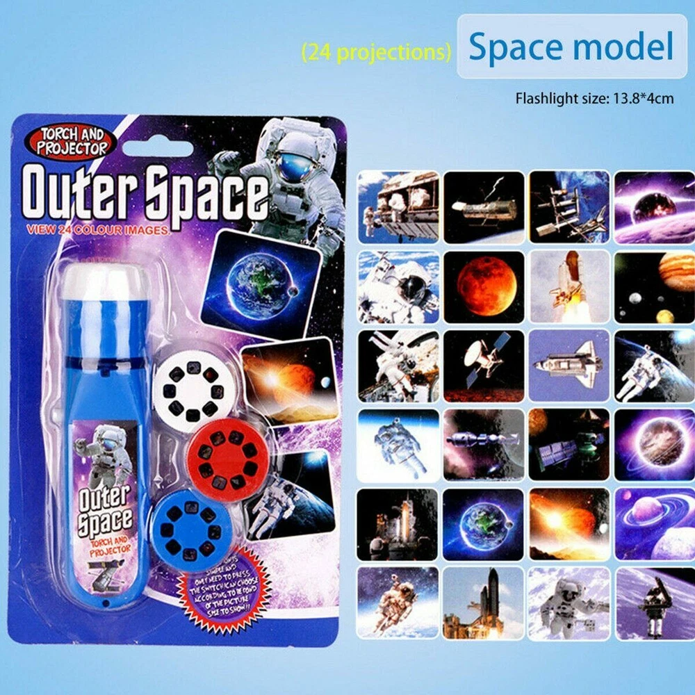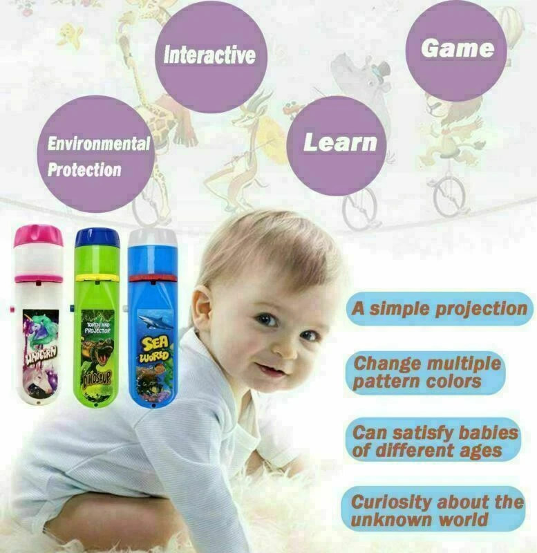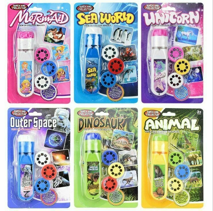 Educational Learning Toys for Kids Toddlers Age 3 4 5 6 7 8 Years Old Boys Girls Feactures: 【24 pictures and 1 set of themes】 This have six themes to choose from:under the sea, unicorn . mermaid .animal dinosaur. space etc. 【Safe and high quality materials】Made of high quality ABS environmentally friendly non-toxic materials, and the smooth edges will not harm the children's small hands.(AA Batteries are not included) 【Adjustable Focal Length】Slide the lens to adjust the sharpness,It is recommended to use a dark room with a projection distance of 50-150 cm to create clear and precise images. 【Early Learning Toys & Sleeping Story】Let children know optical common sense. Learning while playing, stimulate the child's curiosity and imagination. 【Best Gift】 Is kids' favorite Christmas / holiday / birthday gift. Specification: Name: Projection Flashlight Material: plastic Power:<1mW Size: 5.3 *1.37 inches /13.5*3.5cm Themes:unicorn, underwater world, space series, mermaid,animal ,dinosaur, space ,etc. Number of projection patterns: 24 Power supply: 2PCS × AA batteries (not included) Contains: 1X Projection Flashlight 3 X Projection Wheel