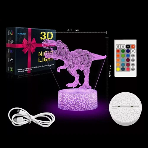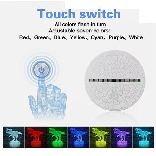 Product Description Description 【Interesting 3D Visual Effect】: The nightlights are made with 3d laser engraving technology to create a gorgeous optical gorgeous 3d illusion with a realistic dinosaur shape design,It is perfect 【Smart Touch】: The 3d night light with remote control and touch mode control, 7 or 16 different colors can be adjusted through the remote control, dinosaur lights can be fixed to static or gradient colors for home decorations, children’s room, living room, bedroom ,etc 【Convenient and Safe】: 2 power modes - 3* AA batteries(Not included) or USB cable powered. Use high quality led lights, the light is soft and uniform, no-flicker, harmless to children's eyes 【Perfect Gift】: Dinosaur lamp would be perfect party supplies,dinosaur gifts for teen girls kids baby,birthday gifts,thanksgiving gifts,christmas gifts,anniversary gifts,graduation gifts,families and friends 【Applicable Scenarios】: The dinosaur lights can be used as home decor, kids bedroom decor light, bars, cafes, hotels, parties, etc! as bedside lamp at night, so that you and your children can enjoy sweet and warmth night! i-CHONY - Dinosaur Night Light Made for Kids and Family! Made with 3d laser engraving technology can fixed one color or 7 colors auto gradual changing night lights -- red, green, blue, yellow, purple,cyan, white. It is a great creative decorative lights for children bedroom, living room, dinning room and outdoor decorations. Perfect Gifts: Birthday gifts - T-rex toys gifts - christmas gifts - new year's gift for kids. Parameter: Light Bulb Material: Acrylic Number of LED: 10 pcs LED Life Span: 10000 h + Power: 0.4W Voltage: 5V Power spend: 0.012kw.h/24 hours Power Supply: 3* AA Batteries ( not included)or USB connection(Mobile power, computer, suitable for most USB ports) 3*AA Battery Life Time: More than 60 hours (low power consumption) Package includes: 1* Remote control 1* Acrylic panel 1* Color-Changing ABS base 1* USB cable, length: 31 inches 1* User manual Note: 1. USB and 3AA batteries cannot be powered together at the same time. 2. Please remove the surface protective film before use. 3. Do not touch the acrylic plate surface with your fingers to avoid finger print marks on the plate which may affect the 3D illusion. Item model number tea2020206 Light Source Type LED Style T-rex lamp Number of Items 1 Power Source 3*AA Battery Powered / USB Powered Number of Light Sources 10 Country of Origin China Is Electric Yes Batteries Included? No Lighting Method Adjustable Mounting Type Tabletop Lamp Type Bedside Lamp,Atmosphere Lamp,Table Lamp Number of Pieces 16 Room Type Bedroom,Living Room,Usb Average Life 10000 Hours Product Dimensions 3.94"D x 6.1"W x 7.1"H Material Plastic Installation Type Tabletop Age Range (Description) Adult, Kid, Teen Controller Type Remote Control Finish Type Transparent Specific Uses For Product Birthday gifts,christmas gifts,new year's gift,dinosaur gifts,dinosaur toys for kids boys age 2 3 4 5 6 7 8 9 10 11 12 Bulb Features 2-way switching Indoor/Outdoor Usage Indoor Brightness 300 Microcandela Control Method Remote Water Resistance Level Not Water Resistant Batteries Required? No Item Weight 7.36 ounces Connectivity Technology USB Special Features Smart touch dimming, Remote control dimming, Auto gradual color Changing, Energy saving Special Feature Smart touch dimming, Remote control dimming, Auto gradual color Changing, Energy saving Part Number tea2020206 Shade Color Multicolor Color Temperature 3000 Kelvin Color red, blue, green, yellow, purple, cyan, white Wattage 5 watts Is Cordless? Yes Base Material Acrylic Is Waterproof false Shape Tyrannosaurus Rex Voltage 4 Volts Recommended Uses For Product Decoration, Camping Shade Material Plastic Finish types Transparent Included Components Bulb included, Power cord, Remote control Switch Type Touch/Remote Controller Brand Unbranded Shipping Fast shipping USA About Us Payment Shipping Returns Contact Us Based in USA, offering high quality product Pick up orders welcome here and we also offer great discount for wholesales. We only accept PayPal payment . We process and dispatch your purchase within 2 business day after payment clearance. Please contact us if you have special requirements (combination of packaging etc.). We offer free USPS or FEDEX Package as default. If you choose express post, we charge a flat rate and we Express Post, which can be delivered in 1-3 business days, depending on your location. Please contact us first when return, exchange and refund is required. Any direct return of purchased items will not be processed. Change-of-mind return can only be accepted within 7 days after purchase. All other returns can be accepted in 30 days. We will closely examine the condition of the returned items and will not issue any refund/exchange before we make sure the items are in their original neat conditions. Before leaving us neutral or negative feedback, please contact us first. We will do everything we can to give you a satisfying solution. Please don't open case via eBay or PayPal. Please don't open any return request before contact us. We do our best to resolve any issue. Leaving negative feedback and low ratings doesn't get things solved. So please talk with us and we will not let you down. About Us Based in USA, offering high quality product Pick up orders welcome here and we also offer great discount for wholesales. Payment We only accept PayPal payment . Shipping We process and dispatch your purchase within 2 business day after payment clearance. Please contact us if you have special requirements (combination of packaging etc.). We offer free USPS or FEDEX Package as default. If you choose express post, we charge a flat rate and we Express Post, which can be delivered in 1-3 business days, depending on your location. Returns Please contact us first when return, exchange and refund is required. Any direct return of purchased items will not be processed. Change-of-mind return 