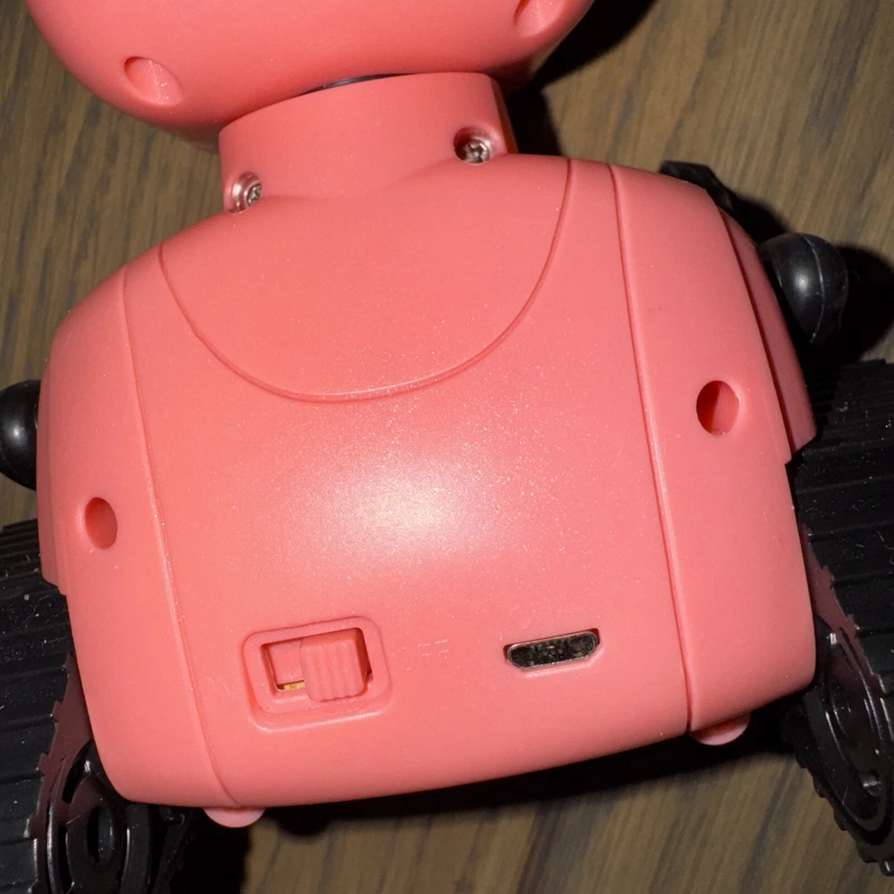 This educational learning toy is perfect for kids and toddlers aged 3 to 8 years old. It features a cute robot design in pink color, made of high-quality plastic material. The toy is light and does not include the remote or charger, but still works without it. Small markings on one eye as well, see pictures. This action figure toy has a size of 4.5 inches and weighs only 2.4 grams. It has batteries and has special features like light and remote control. The toy is ideal for Easter, Christmas, party, and baby shower occasions. Get this learning toy for your little one and let them explore and learn through play.