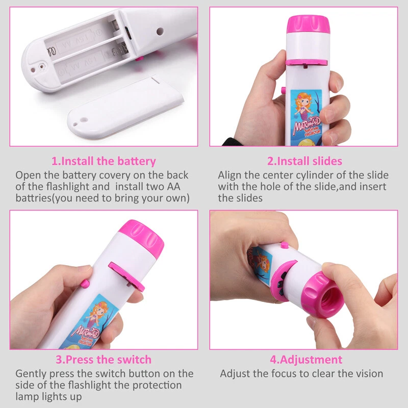 Juguetes educativos de aprendizaje para niños pequeños de 3, 4, 5, 6 y 7 años, n Product Feature Energy saving: There is an "on/off" button on the cutting torch, you can turn it off when not in use. Material: High-quality ABS plastic-safe and non-toxic,harmless to the body. Sleeping story: A good gift for children. No words can help parents tell stories for their children to improve their imagination and develop logical thinking skills. Use stories to tell children stories.Good science and education toys.Great bed time story machine for your kids! Convenient design: Convenient to carry, quality and safety, very suitable for parent-child interactive games. Educational Toys: Improving baby's hand-eye coordination is of great significance to intelligence. Use Method: Remove the paper between the battery and the cover. Pull out the projection slot, and then insert the slide. Turn on the cutting torch, and then adjust the focus to the best image. Product Specification Type: Learning Toys Material: ABS plastic Age Level: 2 Years and Up Lighting effect: Sea World Package Included 1 x projection flashlight with 3 Slides ( Batteries Not Included )
