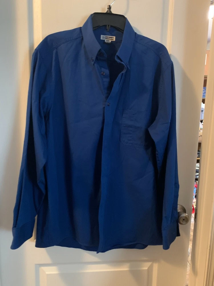 Edwards Dress Shirt L Blue In good condition. I have took pictures to show the condition of the Shirt. I am Not an Expert, also I am Not a Professional EBay Seller. All Items are Sold "As Is" The condition noted in description is only my opinion, I do my best to take good pictures of the items. Please be sure to look at all the pictures. Please ask all questions before bidding.