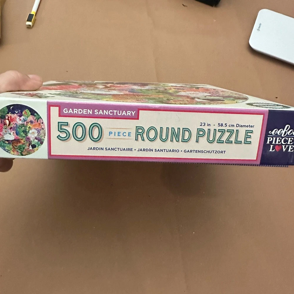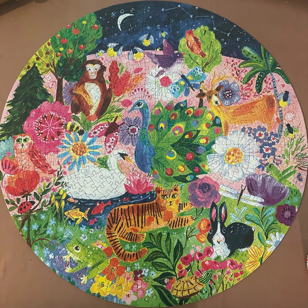 Eeboo 500 Piece Round Puzzle Garden Sanctuary Flowers Floral Complete! Put together just once. Sooo pretty and very fun to do!