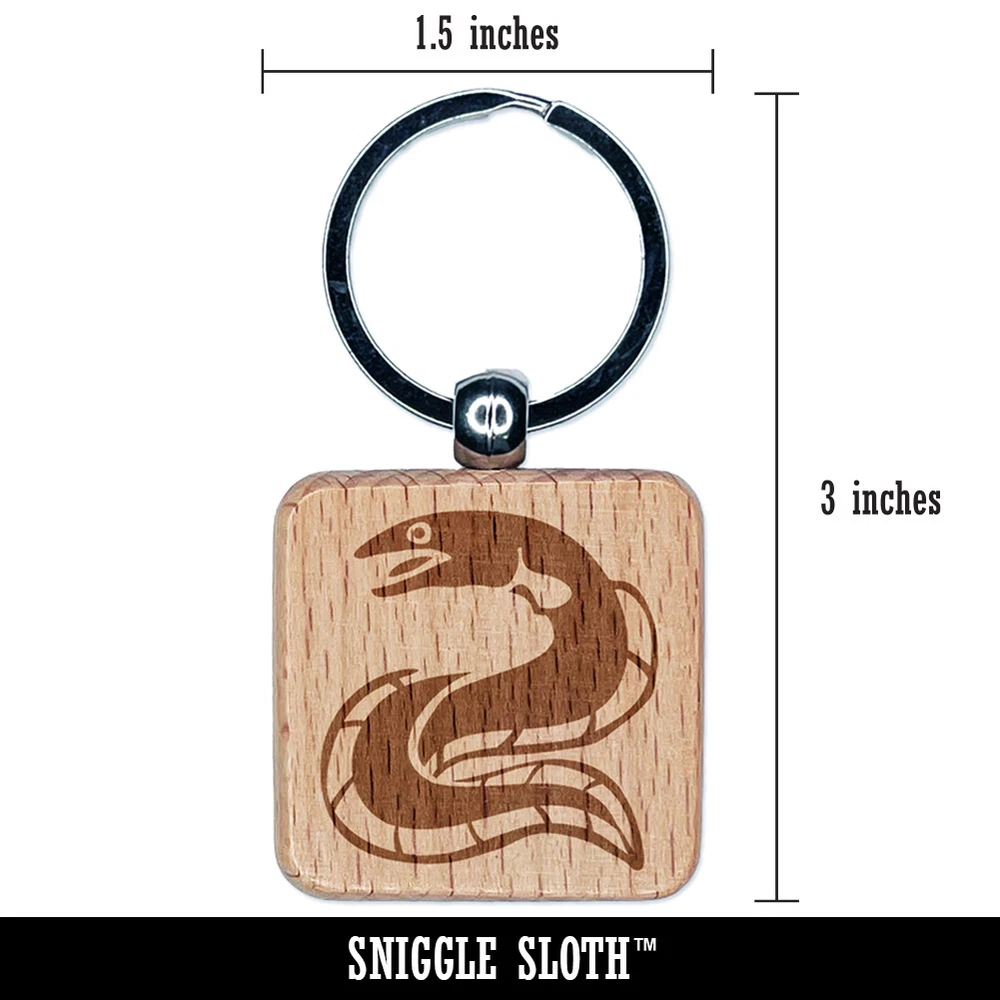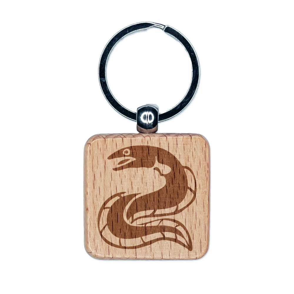 Eel Conger Long Fish Engraved Wood Square Keychain Tag Charm