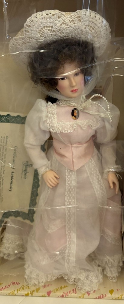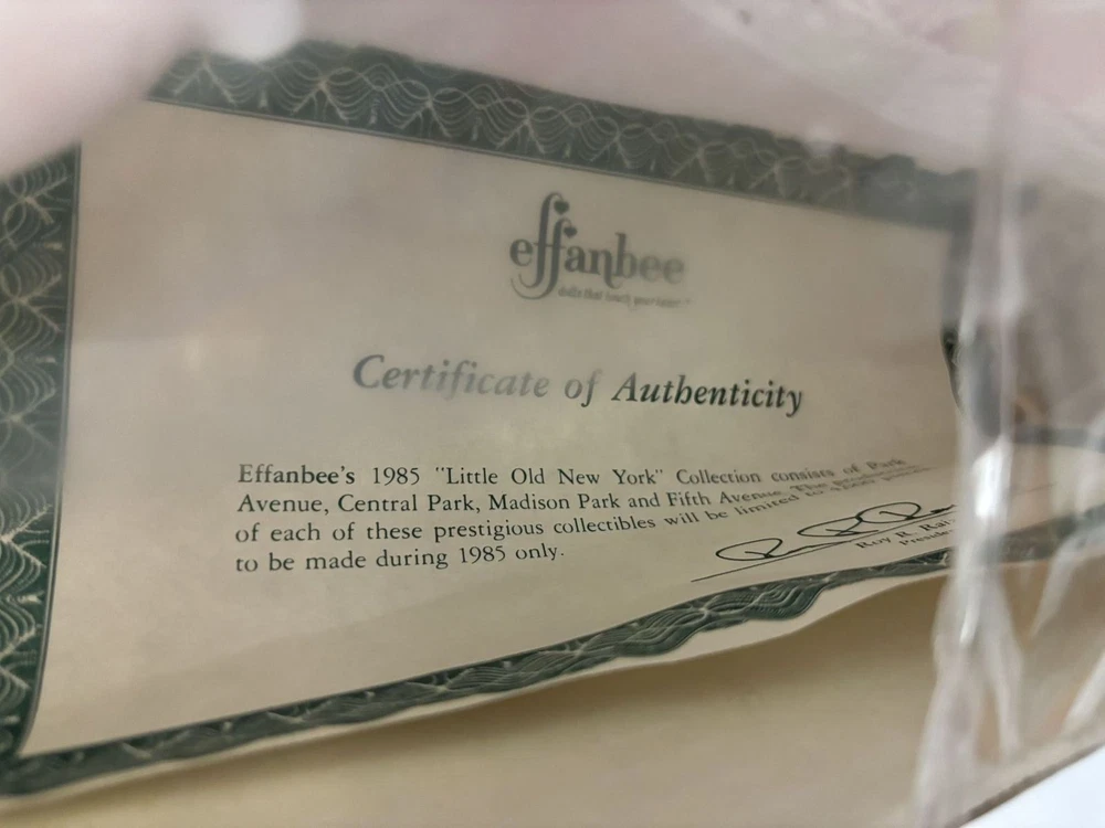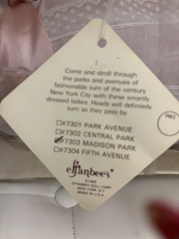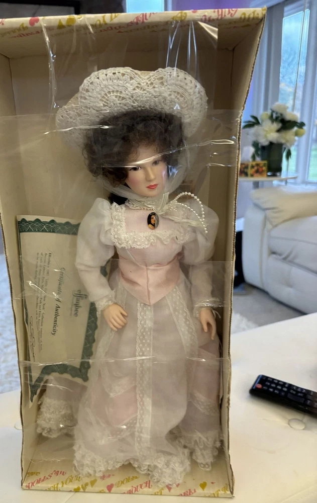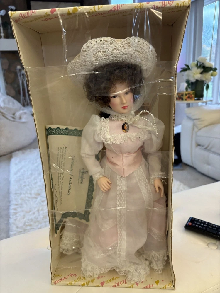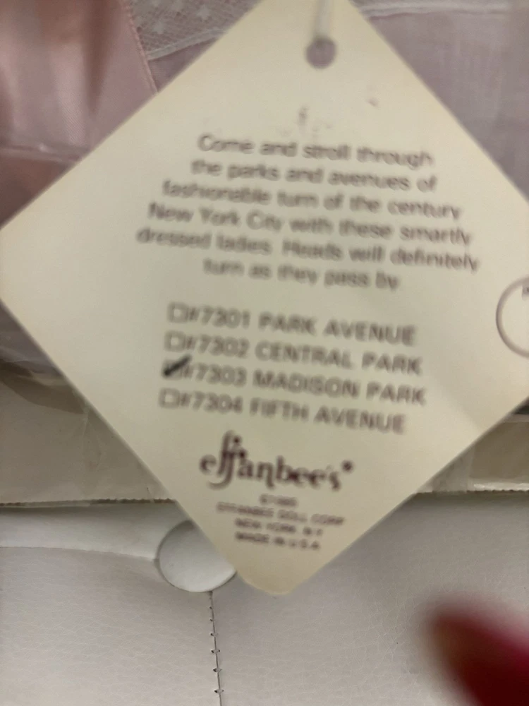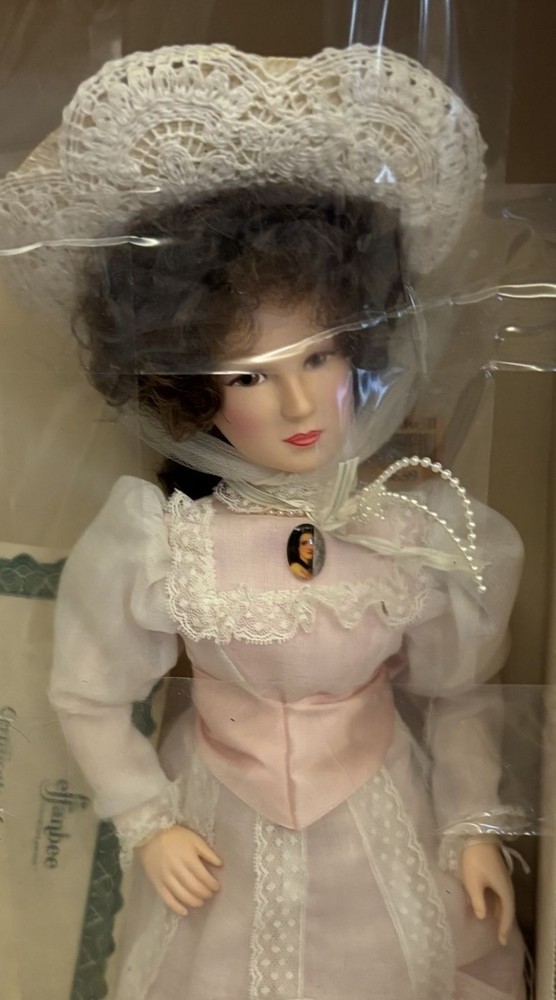 This doll is like a time traveler from 1986, capturing the essence of old New York fashion with a touch of Victorian flair. Her lace-adorned dress and hat scream sophistication, or maybe that’s just the plastic wrapping. • Collectible Effanbee Doll • Part Of Little Old New York Collection • Features Lace Dress & Hat • Detailed Facial Features • Victorian-Inspired Design Please see all photos as they are part of the description. Always open to reasonable offers! Jewelry is never cleaned as we want to preserve its timeless beauty and aging. Vintage items tell a story and we would like you to see that story. It also allows the new owners to clean in a way that is right for them.