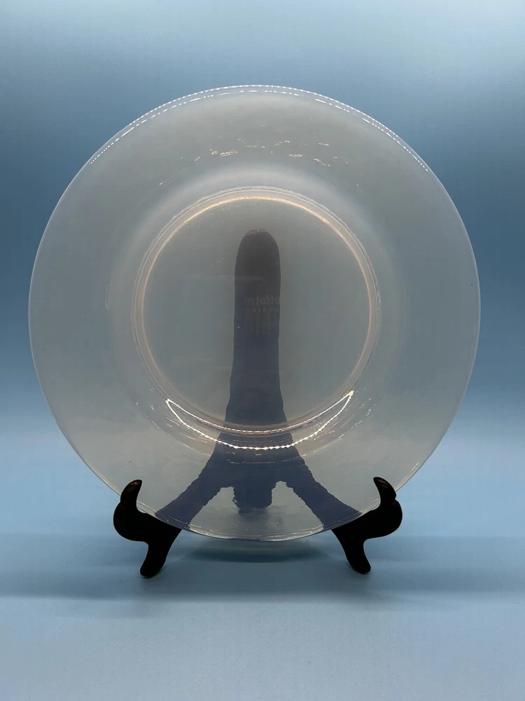 Add elegance to your table with this stunning 8-inch salad and dessert plate from Effetre Murano Italy. Expertly crafted with opalescent translucent glass, this plate is perfect for any occasion. Its unique design and high-quality material make it a one-of-a-kind addition to your collection. Ideal for serving salads, desserts, or appetizers, this plate is sure to impress your guests. The beautiful opalescent finish of the glass creates a mesmerizing effect, making it a great conversation starter. This plate is a must-have for anyone who loves to entertain or appreciates fine craftsmanship. This is a preowned item which may have various cosmetic blemishes, including signs of wear, dust, markings, and other imperfections due to its previous use, age, movement, and storage. There are also imperfections created when this dish was made. I’ve tried to highlight the spots I noticed. It should also be noted that color may vary from photos due to camera flash and/or computer monitor color variations. If condition concerns you, please review the images closely before purchasing, zooming in as necessary, as they should be considered part of the description. Questions are always welcomed! 10/54/11/23