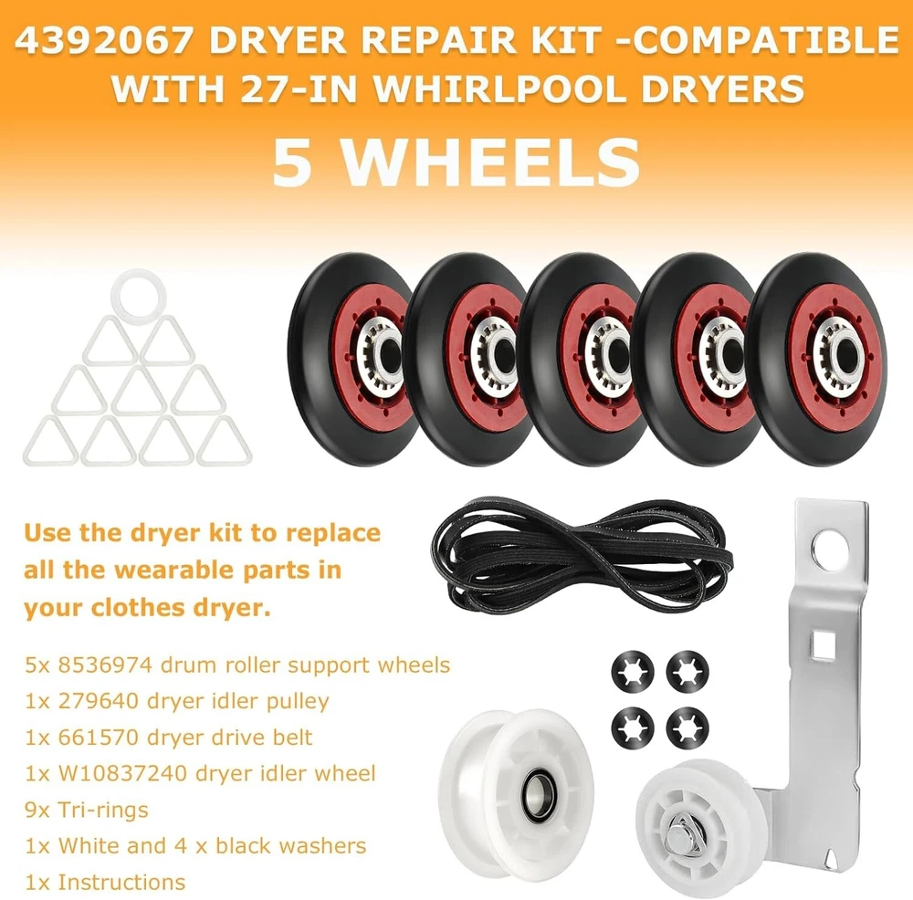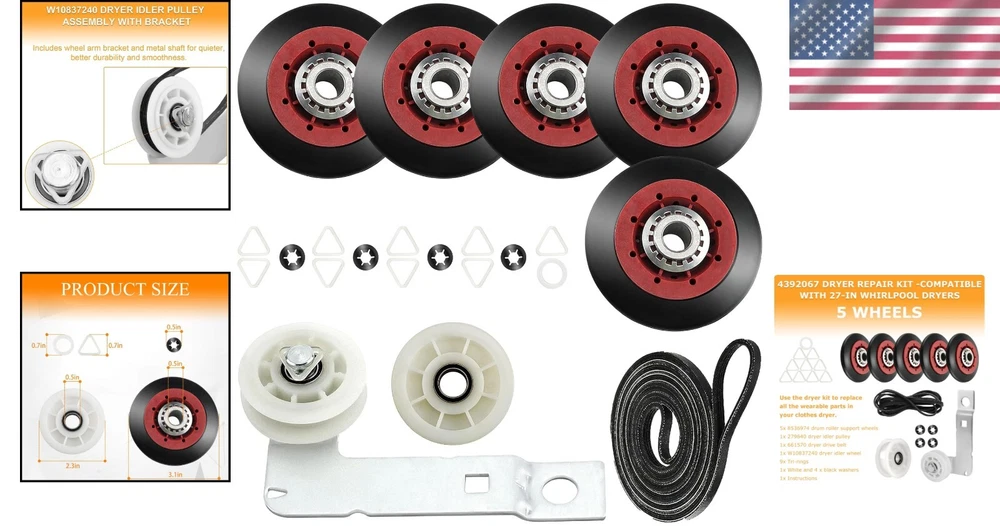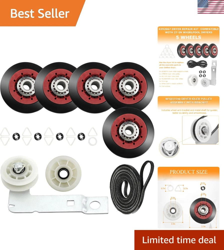 Efficient 5-Wheel Dryer Repair Kit: Idler Pulley & Belt for Maytag and Whirlpool
