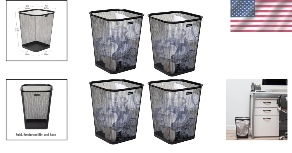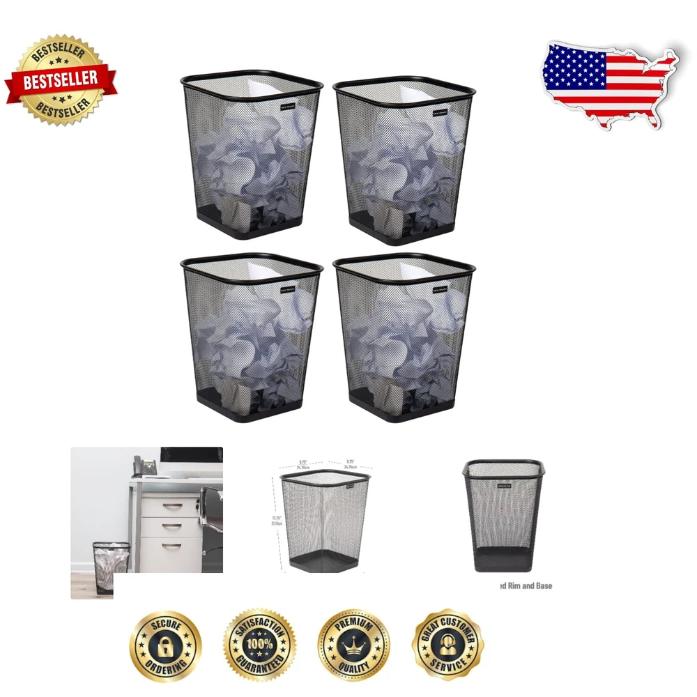 Efficient Waste Management with 4 Stylish Black Mesh Trash Bins, 5 Gallons ‹ › ‹ › ‹ › ‹ › ‹ › ‹ › ‹ › ‹ › ‹ › Efficient Waste Management with 4 Stylish Black Mesh Trash Bins Capacity: 5 Gallons (18.92 liters) per bin Coordinated and Functional: This exquisite set of four mesh garbage cans has been designed to elevate the aesthetic of your home or office space, blending functionality with sophistication. Ventilated Mesh Design: The ventilated mesh structure ensures proper airflow, effectively preventing unpleasant odors and promoting an environment of freshness. Premium Stainless Steel Construction: Each bin features high-quality stainless steel that provides exceptional durability and a sleek, modern appearance. The lightweight design allows for effortless movement and handling, ensuring convenience in any setting. Generous Capacity: With a generous capacity of 5 gallons per bin, you'll enjoy the ability to dispose of significant amounts of trash without the frequent need for emptying, perfect for busy environments. Convenient Dimensions: Each bin features an opening measuring 9.75 inches long x 9.75 inches wide x 12.25 inches tall (24.76 x 24.76 x 31.11 centimeters), providing ample space for waste disposal while maintaining a sleek, compact size. Sleek and Functional: Designed for seamless organization, these bins are perfect for offices, kitchens, and bathrooms, combining an airy mesh design with functionality. A solid metal edge at the bottom ensures that any small liquid spills are contained, preventing messes. Constructed with reinforced steel mesh, these bins are sturdy and built to last, complemented by a smooth rounded lip that adds an elegant touch. Promote Recycling: Each bin encourages responsible waste management by allowing for easy separation of recyclables from non-recyclables. Compact enough to fit under desks or inside cabinets, these bins are practical without sacrificing style. Order Now! Invest in this stylish and efficient waste management solution. Transform your space with our set of four sophisticated mesh trash bins — a perfect blend of modern design and practical functionality. Shipping Free & Fast Shipping - We offer free shipping to most of the USA with a normal delivery time of 3-7 days. However, due to the current situation, additional delivery time (up to 3 weeks) may be required for some items. Alternative Carriers - We may use alternative carriers (e.g. USPS, FedEx, UPS, etc.) to ensure your package arrives safely and on time. Due to the use of multiple carriers, we are unable to provide a tracking number automatically. Handling Time - Orders are processed and shipped within 1-2 business days of receiving cleared payment. Shipping Restrictions - Shipping to Alaska, Hawaii, Puerto Rico, Guam, and other US territories may incur shipping charges or delivery restrictions. Please contact us before ordering, or your order can be refunded/cancelled. State Restrictions - There may be restrictions based on your state of purchase. For example, certain items may not be shipped to California due to state regulations. Contact for Tracking Updates - If you require tracking updates or have any concerns about the delivery of your order, please feel free to contact us, and we will be happy to assist you. Return 30-Day Hassle-Free Returns - We want you to be completely satisfied with your purchase. If you are not, you can return the item within 30 days of receiving it for a full refund or exchange. Easy Return Process - To start a return, simply contact us and we will provide you with a prepaid return shipping label and detailed instructions. Restocking Fee - There are no restocking fees for returns. However, the buyer is responsible for return shipping costs if the return is not due to a seller's error. Refund Processing Time - Refunds will be processed within 5 business days of receiving the returned item in its original condition. Payment We accept all major credit cards, PayPal, and Apple Pay for your convenience. Your payment information is secure and encrypted to ensure a safe and seamless transaction. Please complete your payment within 3 days of purchase to avoid any delays in shipping. Feedback Your feedback is extremely important to us. We strive to provide the best products and customer service possible. If you are satisfied with your purchase, please take a moment to leave us a positive review. If you have any concerns or issues with your order, please contact us before leaving negative feedback. We are committed to resolving any problems and ensuring your satisfaction. Contact Us If you have any questions or concerns, please feel free to reach out to our customer support team. You can contact us through the eBay messaging system. We are available Monday to Friday, 9:00 am to 5:00 pm EST, and we will do our best to respond to your inquiry within 24 hours. Buy it now and enjoy a pleasant shopping experience! UPC: Not Set Unit Quantity: 4 Room: Kitchen,Office,Bathrooms,Offices Material: Metal,Stainless Steel,Metal Mesh Features: Portable,Ventilated Mesh,Durable,Stylish,Compact,Lightweight,Easy to Move Suitable For: General Waste,Indoor,Recycling Brand: Unbranded Item Height: Mesh Trash Can Set Item Length: Mesh Trash Can Set Item Width: Mesh Trash Can Set Type: Wastebasket Color: Black Capacity: 5 gal Size: Set of 4 Number of Compartments: 1 Model: Not Set Item Weight: 3.8 lb MPN: Not Set Shape: Square Style: Modern Pattern: Not Set Country/Region of Manufacture: Not Set Finish: Stainless Steel Unit Type: Unit Personalize: Not Set