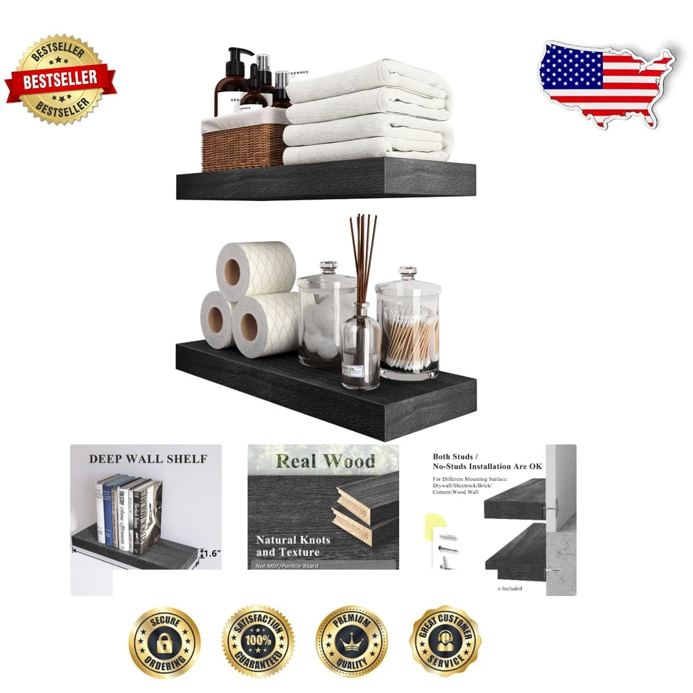 Effortless Install 16 Inch Rustic Wood Floating Shelves - Stylish Open Storage ‹ › ‹ › ‹ › ‹ › ‹ › ‹ › ‹ › ‹ › ‹ › Effortless Install 16 Inch Rustic Wood Floating Shelves Transform your space with our exquisite set of two stylish open storage floating shelves, perfectly sized at 16 inches. These rustic wooden shelves are designed to enhance any room in your home with both functionality and charm. Features: Effortless Installation: With a single integrated bracket, installation is a breeze. No more measuring or complicated instructions! Our clear guide ensures a hassle-free setup, and the hidden bracket gives a seamless floating shelf appearance. Sturdy and Secure: Crafted with a solid metal tube bracket and premium wall anchor hardware, these shelves are designed to provide excellent support, preventing sagging and ensuring a flush finish against the wall. Versatile Mounting Options: Equipped with two types of premium anchors, our floating shelves are suitable for various wall surfaces, including drywall, brick, and hardwood, ensuring a perfect fit in any home. Suitable for Multiple Walls: Our shelves cater to both stud and no-stud installations, making them adaptable for any wall surface, allowing you to decorate without limitations. Stylish and Functional: This open floating shelf set is not only practical but enhances the aesthetics of any room. Use them to display plants, photos, and decor or as stylish bookshelves. Benefits: Easy and quick installation saves time and effort. Robust design ensures durability and stability. Versatile design fits seamlessly into any home décor, from rustic to modern. Transform unused wall space into stylish displays. Perfect for all rooms: bathroom, kitchen, living room, bedroom, or office. Why Choose Our Rustic Wood Floating Shelves? If you're looking to elevate your home décor effortlessly, these 16-inch floating shelves are your perfect choice. Offering stylish storage solutions with an industrial twist, they provide the beauty of open storage while being sturdy and reliable. Say goodbye to cluttered spaces and hello to elegant organization! Order your set of Effortless Install Rustic Wood Floating Shelves today and transform your home into a haven of style and functionality! Shipping Free & Fast Shipping - We offer free shipping to most of the USA with a normal delivery time of 3-7 days. However, due to the current situation, additional delivery time (up to 3 weeks) may be required for some items. Alternative Carriers - We may use alternative carriers (e.g. USPS, FedEx, UPS, etc.) to ensure your package arrives safely and on time. Due to the use of multiple carriers, we are unable to provide a tracking number automatically. Handling Time - Orders are processed and shipped within 1-2 business days of receiving cleared payment. Shipping Restrictions - Shipping to Alaska, Hawaii, Puerto Rico, Guam, and other US territories may incur shipping charges or delivery restrictions. Please contact us before ordering, or your order can be refunded/cancelled. State Restrictions - There may be restrictions based on your state of purchase. For example, certain items may not be shipped to California due to state regulations. Contact for Tracking Updates - If you require tracking updates or have any concerns about the delivery of your order, please feel free to contact us, and we will be happy to assist you. Return 30-Day Hassle-Free Returns - We want you to be completely satisfied with your purchase. If you are not, you can return the item within 30 days of receiving it for a full refund or exchange. Easy Return Process - To start a return, simply contact us and we will provide you with a prepaid return shipping label and detailed instructions. Restocking Fee - There are no restocking fees for returns. However, the buyer is responsible for return shipping costs if the return is not due to a seller's error. Refund Processing Time - Refunds will be processed within 5 business days of receiving the returned item in its original condition. Payment We accept all major credit cards, PayPal, and Apple Pay for your convenience. Your payment information is secure and encrypted to ensure a safe and seamless transaction. Please complete your payment within 3 days of purchase to avoid any delays in shipping. Feedback Your feedback is extremely important to us. We strive to provide the best products and customer service possible. If you are satisfied with your purchase, please take a moment to leave us a positive review. If you have any concerns or issues with your order, please contact us before leaving negative feedback. We are committed to resolving any problems and ensuring your satisfaction. Contact Us If you have any questions or concerns, please feel free to reach out to our customer support team. You can contact us through the eBay messaging system. We are available Monday to Friday, 9:00 am to 5:00 pm EST, and we will do our best to respond to your inquiry within 24 hours. Buy it now and enjoy a pleasant shopping experience! UPC: Not Set Unit Quantity: 2 Set Includes: Floating Shelf,Shelf Brackets Material: Wood Features: Space Saving,Sturdy,Secure,Effortless Installation,Stylish,Functional Mounting: Wall Mounted Room: Bedroom,Dining Room,Kitchen,Office Department: Adults Theme: Not Set Year Manufactured: Not Set Required Tools: No Tools Required Brand: Unbranded Item Height: Floating Shelves Item Length: Floating Shelves Item Width: 16 in Number of Shelves: 2 Type: Floating Shelf Pattern: Not Set Style: Rustic Color: Black Number of Items in Set: 2 Door Mechanism: Open Face Product Line: Not Set Maximum Weight Capacity: 50 lb Item Weight: 5 lb Maximum Weight per Shelf: 20 lb MPN: Not Set Model: Not Set Shape: Rectangle Finish: Unfinished Distance from Floor to Bottom: 6 in Country/Region of Manufacture: Not Set Suitable For: Decorative Storage Wood Tone: Light Wood Maximum Height: Not Set Minimum Length: Not Set Maximum Length: N