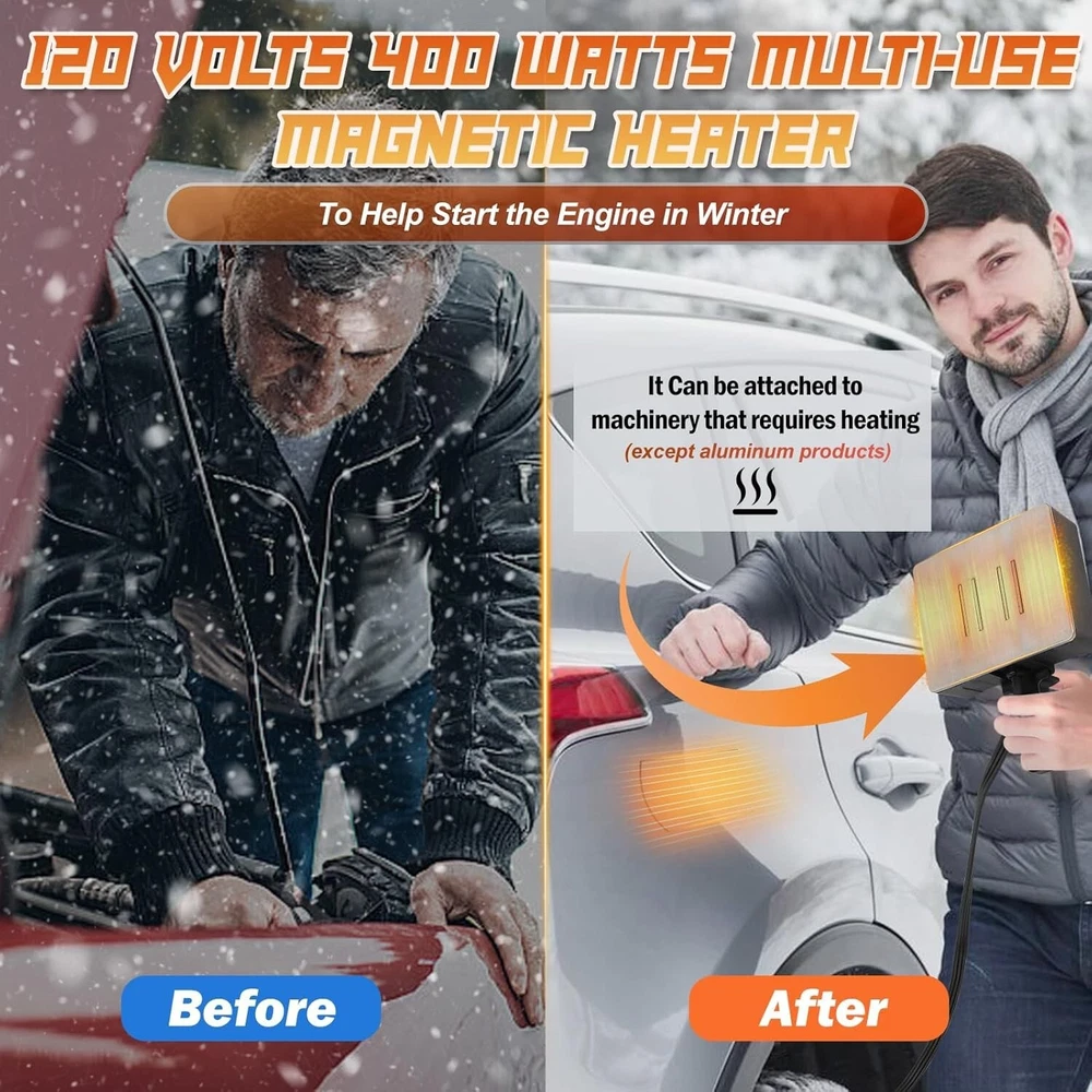 Effortless Magnetic Engine Heater 120V, 400W with Internal Thermostat for Safety ‹ › ‹ › ‹ › ‹ › ‹ › ‹ › ‹ › ‹ › ‹ › Effortless Magnetic Engine Heater 120V, 400W Equipped with Internal Thermostat for Safety Features: Wide Range of Use Scenarios: Perfect for heating large or small (non-aluminum) engine blocks in a variety of vehicles and equipment, including tractors, snowmobiles, motorcycles, snow blowers, generators, and farm equipment. Smart and Secure: Safety is our top priority. The heater features an internal thermostat that automatically disconnects at 130°C to prevent overheating and resumes heating when the temperature drops to 60°C. Effortless Installation: The robust magnetic base ensures a secure attachment to metal surfaces, eliminating complicated mechanical installations for a hassle-free experience. Premium Craftsmanship: Crafted from durable materials with a practical grip to protect your hands from heat, ensuring comfort and reliability even in demanding conditions. User-Friendly Installation: The magnetic design allows easy attachment to oil pans, engine blocks, or battery holders, making it versatile for various applications. Convenient 43-inch Power Cord: The flexible 43-inch (110cm) power cord allows for effortless positioning while keeping a safe and reliable connection to your power source. Benefits: Dependable and efficient heating for optimal engine performance. Enhanced safety with automatic temperature regulation. Easy to set up and use, saving you valuable time. Built to withstand harsh conditions with strong magnetic hold. Versatile application across various vehicles and equipment. Why choose our Effortless Magnetic Engine Heater? Transform the way you maintain your vehicles and equipment with the Effortless Magnetic Engine Heater. Designed for versatility and safety, it expertly heats non-aluminum engine blocks, ensuring optimal performance even in the harshest conditions. With its robust magnetic base, user-friendly installation, and internal thermostat, this heater offers unparalleled convenience and reliability. Invest in precision and peace of mind – choose our Effortless Magnetic Engine Heater for all your heating needs! Shipping Free & Fast Shipping - We offer free shipping to most of the USA with a normal delivery time of 3-7 days. However, due to the current situation, additional delivery time (up to 3 weeks) may be required for some items. Alternative Carriers - We may use alternative carriers (e.g. USPS, FedEx, UPS, etc.) to ensure your package arrives safely and on time. Due to the use of multiple carriers, we are unable to provide a tracking number automatically. Handling Time - Orders are processed and shipped within 1-2 business days of receiving cleared payment. Shipping Restrictions - Shipping to Alaska, Hawaii, Puerto Rico, Guam, and other US territories may incur shipping charges or delivery restrictions. Please contact us before ordering, or your order can be refunded/cancelled. State Restrictions - There may be restrictions based on your state of purchase. For example, certain items may not be shipped to California due to state regulations. Contact for Tracking Updates - If you require tracking updates or have any concerns about the delivery of your order, please feel free to contact us, and we will be happy to assist you. Return 30-Day Hassle-Free Returns - We want you to be completely satisfied with your purchase. If you are not, you can return the item within 30 days of receiving it for a full refund or exchange. Easy Return Process - To start a return, simply contact us and we will provide you with a prepaid return shipping label and detailed instructions. Restocking Fee - There are no restocking fees for returns. However, the buyer is responsible for return shipping costs if the return is not due to a seller's error. Refund Processing Time - Refunds will be processed within 5 business days of receiving the returned item in its original condition. Payment We accept all major credit cards, PayPal, and Apple Pay for your convenience. Your payment information is secure and encrypted to ensure a safe and seamless transaction. Please complete your payment within 3 days of purchase to avoid any delays in shipping. Feedback Your feedback is extremely important to us. We strive to provide the best products and customer service possible. If you are satisfied with your purchase, please take a moment to leave us a positive review. If you have any concerns or issues with your order, please contact us before leaving negative feedback. We are committed to resolving any problems and ensuring your satisfaction. Contact Us If you have any questions or concerns, please feel free to reach out to our customer support team. You can contact us through the eBay messaging system. We are available Monday to Friday, 9:00 am to 5:00 pm EST, and we will do our best to respond to your inquiry within 24 hours. Buy it now and enjoy a pleasant shopping experience! UPC: Not Set Cable Length: Not Set Unit Quantity: 1.71 lb Power Source: Electric Mounting Location: Desk/Tabletop,Floor,Wall,Ceiling Material: Not specified,Durable Materials Control Style: None Features: Auto Shut-off,Thermostat Protection Smart Home Protocol: Not Set Smart Home Compatibility: Not Set Refrigerant: Not Set Brand: Unbranded Type: Not Set Heating System: Not specified Color: Black Voltage: 120 V Model: Not Set Number of Heat Settings: Variable BTU Heating Rating: Not Set Energy Star: Not Set Power: 400 W Annual Fuel Utilization Efficiency (AFUE): Not Set Heating Element Format: Not Set Area Covered: Not Set Heating Element Material: Not Set Item Width: Not Set Operating Sound Rating: Not Set Energy Efficiency Ratio (EER): Not Set Item Length: Not Set MPN: Not Set Item Depth: 5.6 in Tank Capacity: Not Set EC Range: Not Set Year Manufactured: Not Set Country/Region of Manufacture: Not Set Air Direction: Not Set Current Rating: Not Set Manufacturer Warra