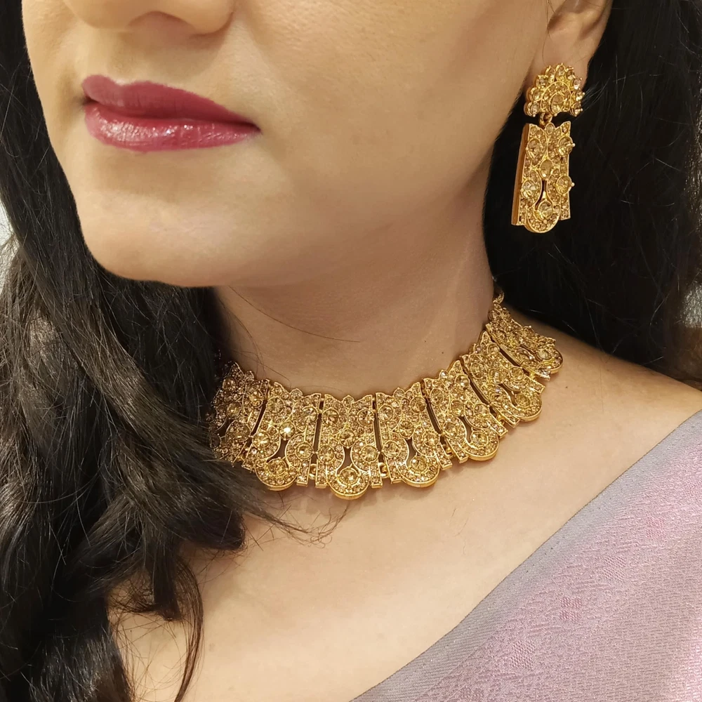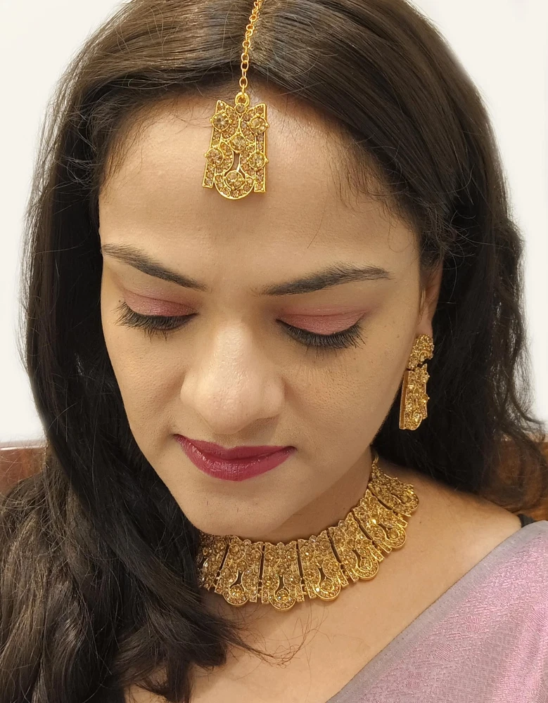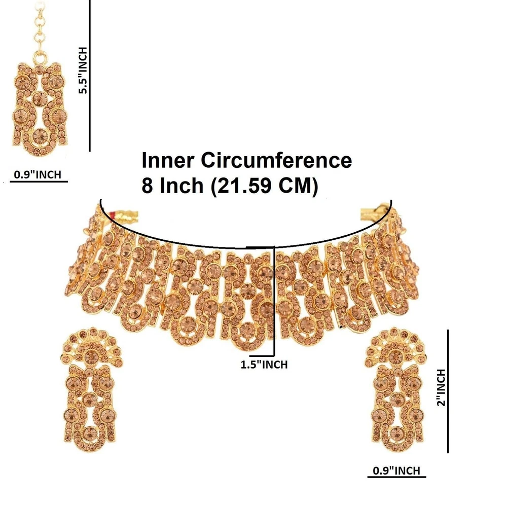 Efulgenz Indian Jewelry Set Bollywood Crystal Rhinestone Choker Necklace Dangle Earrings Maang Tikka Head Chain Wedding Bridal Jewelry for Women Product Details Product Dimensions : 16 x 2.5 x 16 inches; 7.37 ounces Item model number : MNT2131 Department : womens Date First Available : March 14, 2022 Manufacturer : Jaipur Art Jewellery Brand, Seller, or Collection Name: Efulgenz Metal: alloy Material: Copper Gem Type: no gemstone Item Length: 16 inches Chain: No Chain Clasp: Adjustable Drawstring Model number: MNT2131