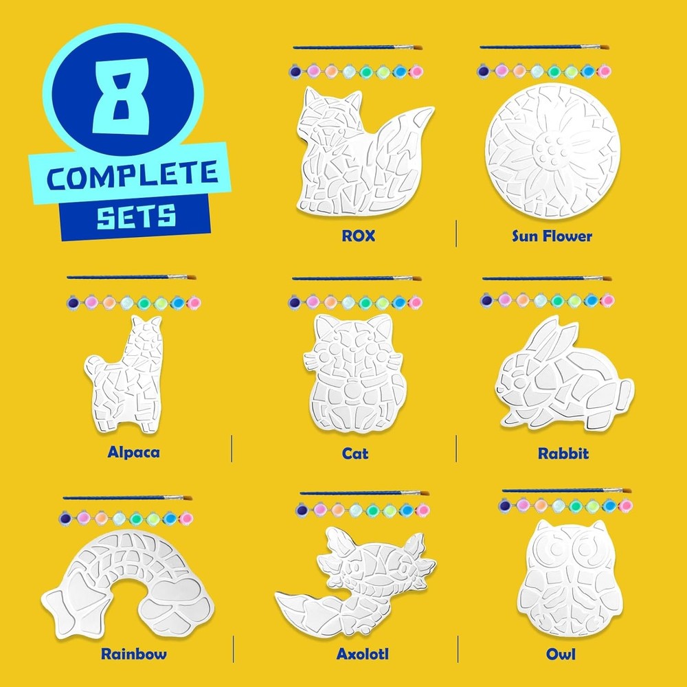 Free eBay listing template designed by dewiso.com EggSun 8Pcs Stepping Stones Painting Craft Kit for Kids 4 8 6, DIY Garden Stones Outdoor Paint Your Own Ceramic Rainbow Arts and Crafts for Boys Girls Ages 4 7 9 10 12 Birthday Gifts FREE AND FAST SHIPPING! About this item 8 Unique Plaster Mosaic Designs Used for Creative Art Projects: This stepping stone painting 7 year old arts and craft girls kit for kids comes with 8 detailed and fun plaster designs, including Sun Flower, Rabbit, Rainbow, Axolotl, Fox, Cat, Owl, Alpaca making it the perfect screen-free activity for kids. Ideal for creating kids’ hand-painted stepping stones that can be displayed indoors or outdoors Glow-in-the-Dark Paints for Eye-Catching Night Displays: The stepping stone painting craft kit for kids equipped with 3 luminous paints, this kit allows kids to create glow-in-the-dark stepping stones, adding a magical touch to their outdoor garden decorations or indoor crafts. A great choice for birthday party crafts or nighttime creative fun All-in-One Kit for Seamless Crafting: This stepping stone painting craft kit for kids includes 6 waterproof paints, 3 glow paints, 8 premium brushes, and a mixing palette. It's a comprehensive kids mosaic craft kit that is non-toxic and safe for children, ensuring parents' peace of mind while kids enjoy hours of creativity Safe and Durable for Indoor and Outdoor Use: The DIY garden stepping stone arts and crafts set for kids ages 4-8 is crafted from child-safe, non-toxic plaster and waterproof paints, ensuring they are durable enough to be used as outdoor garden decorations or as keepsakes in your home A Thoughtful Gift for Any Occasion: Whether as a birthday gift, Christmas gift, or simply a creative gift for toddlers and kids, this kids stepping stone painting set for kids offers endless fun. The waterproof paints ensure that creations last long, making it a memorable and practical gift choice Product We offer a 30-Day Return Policy on items which you are not completely satisfied with. You have the option for a full-refund or an exchange of the item. No returns are available on items shipped outside of the US . Shipping We offer Free Shipping to the US and ship within 2 business days of payment, usually sooner. We use UPS express shipping. That's why your products are usually delivered within 3 days . Contact We try our very best to make sure every customer is completely satisfied. If there's a problem , message us! We're happy to help. 24/7 live chat available.