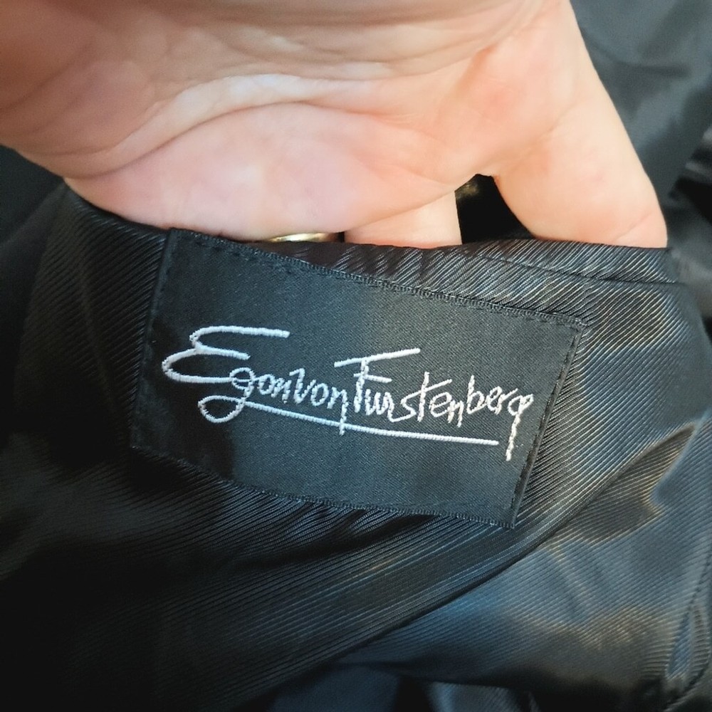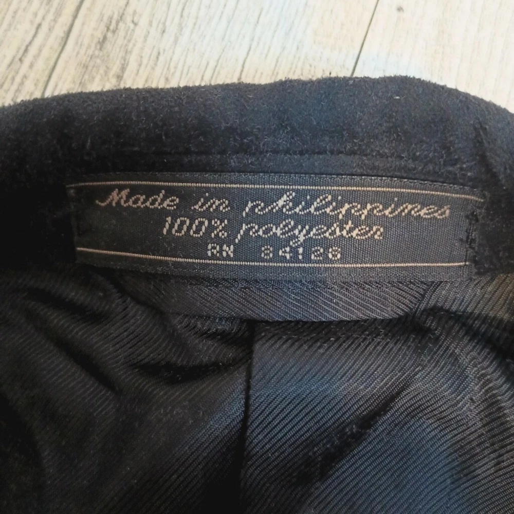 Egon Von Furstenburg Sports Coat Black 44R vintage made in the Philippines 100% polyester feels like soft suede button front button cuffs lots of pockets Great Used Condition ( see photos for details)Flaws: no holes, stains, or tears Please see photos for measurements in inches Washing instructions: see photos if instructions are available Non smoking home Vintage clothing comes with a history and I do my best to inspect for all flaws but I might miss tiny snags or holes. see photos of any flaws if found. Fast shipping! We are happy to answer your questions sport coat cruise dinner hoco homecoming prom wedding guest business preppy office business collegiate academia