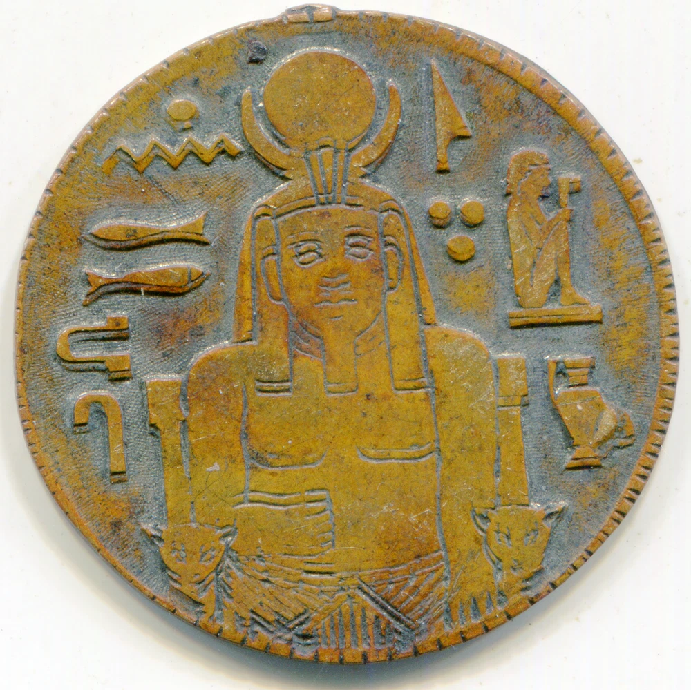 This Egyptian Motif Copper coin from 1905 is a rare find for collectors. The obverse side features a beautiful depiction of the Pharaohs while the reverse side shows a Sphinx, making it a unique addition to any collection. Made of copper, this coin was minted in the United States, adding to its historical value. Its composition and country of manufacture make it a fascinating piece of Exonumia, perfect for anyone interested in tokens and other historical items. Don't miss out on the opportunity to own a piece of history with this Egyptian Motif Copper coin.