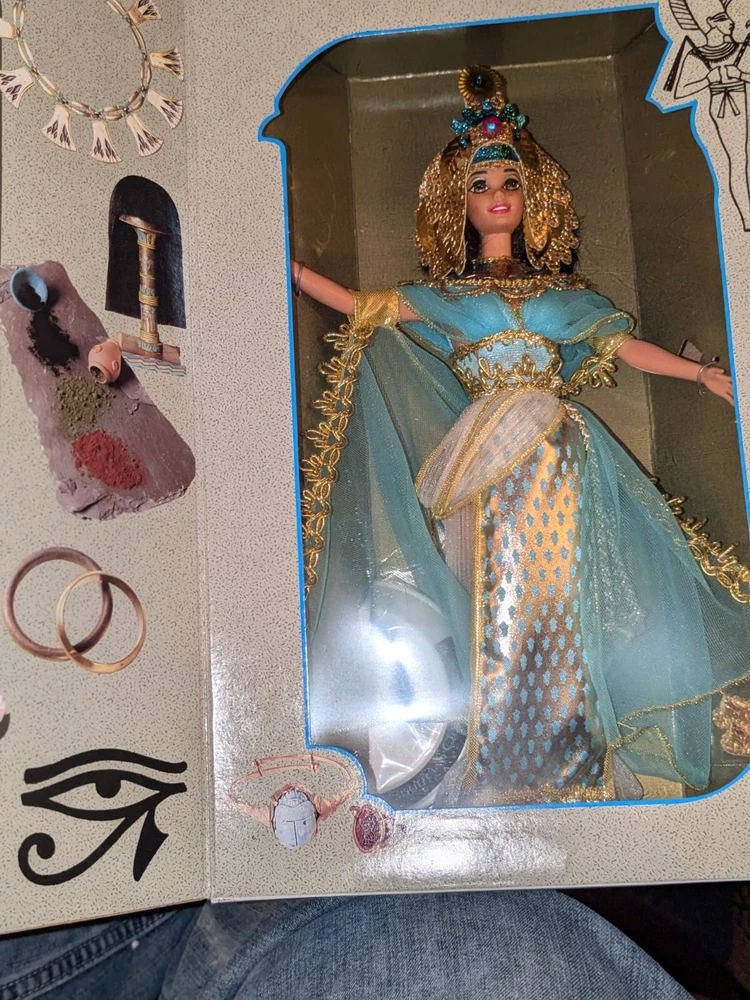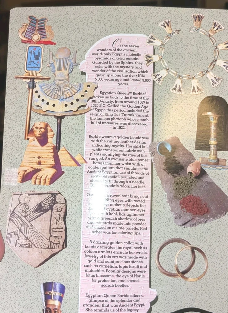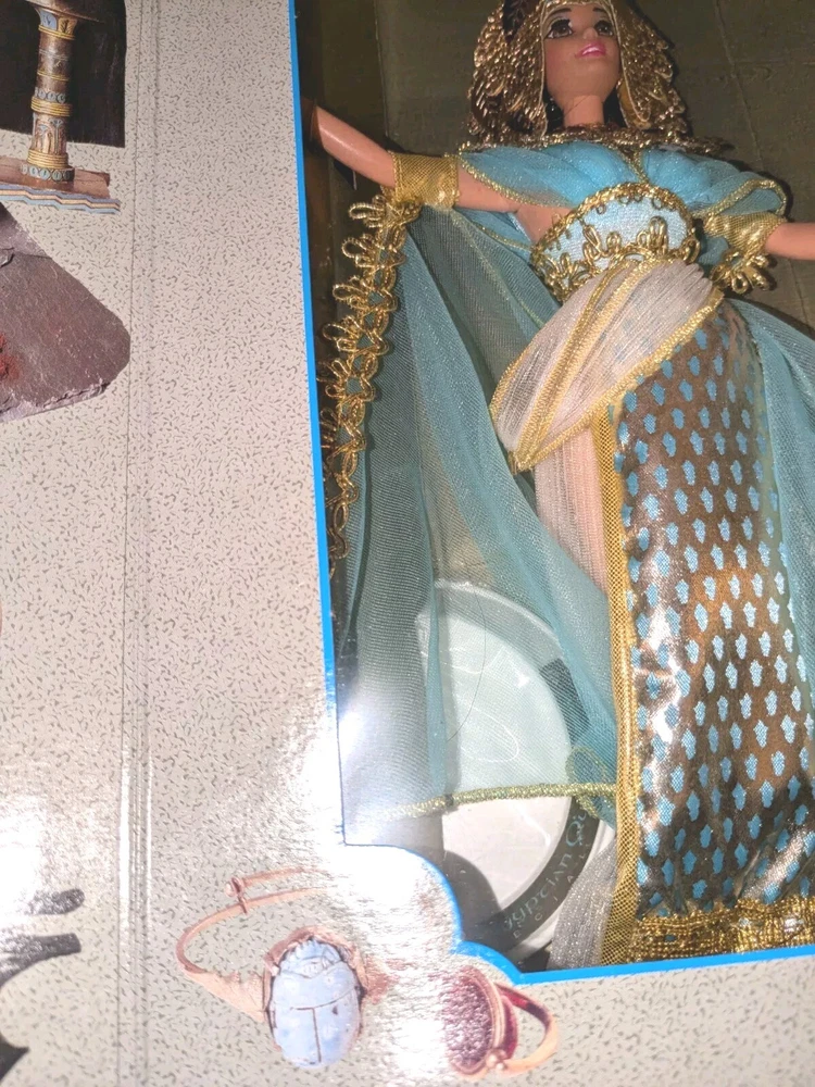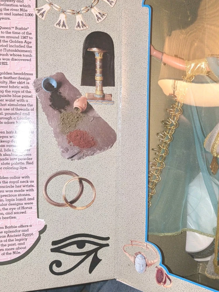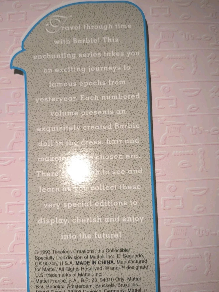 This Barbie doll is a special edition collector's item from The Great Eras Collection. Manufactured in 1993, it features an Egyptian Queen character with various outfits and accessories. The doll is 12 inches in size and has removable clothes. It also comes with a display stand and storage case. This Barbie is an Original UNOPENED Box factory Seiled, Doll Has Been in Storage in a Basement for Many Years, appear to be in New/Mint Condition,, licensed reproduction and is considered a timeless treasure for collectors.