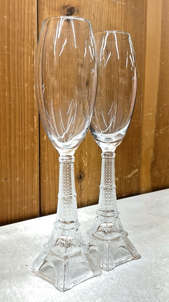 Item Description Set of 2 champagne glasses with the Eiffel Tower stems. They stand 10' tall. Enjoy! By bidding on this item it is agreed upon that you have read this entire post, have viewed all/any supplemental pictures/videos, and have exhausted any questions about this item you may have in regards to this item. There are two ways to describe an item. One way is via text, the other way is via photographs. Use both to familiarize yourself w/ this product before purchasing. If it's not in the pictures, its not included. All item sold as is, as shown, untested, without any expressed or implied warranty or guarantee unless otherwise noted. Item Condition I'm sorry I have to do this, but some people don't know what to expect when purchasing used items on eBay, from us or anyone else, so for disclaimer purposes..... Please be advised that items designated in eBays 'USED' or 'PREVIOUSLY OWNED' items will to some degree show signs of normal use & wear, even if you can't see them in the pictures, such as scuffs, scratches, chips, creases, small dings, dents, rust, spots, stains, dirt, dust, signs of installation and removal, previous owners name/initials, stretched elastic, stretched straps & material and will show signs of age and will have wear to moving parts and parts that contact the ground that you would not expect from purchasing a new item. These conditions may also not be uniform from left to right, say for instance with a shoe. Furthermore, items may look dirtier in person than the camera & lights capture. There is no substitute for buying local. Items are not new unless otherwise stated. These conditions may be too much for some of you, while others wont be bothered. These conditions would also of course apply to any vintage or antique item as well. Furthermore, to keep costs/overhead down and pass the savings on to you (the buyer), we may not always clean our items prior to listing, so used items may need cleaning. Look at pictures above. If this is something that concerns you, we would advise you purchase a new item. Our feedback suggests people are happy w/ their purchases from us. At AuctionBlockOnline, we understand that to buy a previously owned item you have not seen, from an eBay Seller you have not met, requires a leap of faith. That is why we make every effort to accurately and fairly describe our items to our customers via text and to accurately represent the item via numerous photos, to the best of our ability. However, with all pre-owned or used items, the condition is subjective. Any errors are unintentional and at best should be very minor such as small, minor, cosmetic imperfections unless otherwise noted above. Pictures Click on images above to get larger full size image. Hover mouse over smaller thumbnails to change larger picture above them. Once you get the desired small image showing in the larger window above the thumbnails, move your mouse over the larger picture. A box will appear that reads "Mouse here to zoom in." Once mouse is over the image, click on the image and a pop up window will appear showing a much larger picture window. "X" out to close that window. We do note use stock photos unless otherwise noted, the item shown is the actual item for sale. Buyer acknowledges item may vary in shade and or color from photo(s) simply based on the fact we have no control over how your computer monitor setting are set, how photography studio lighting captures actual colors and no control over your individual color blindness levels. We do however use color corrected bulbs specifically for digital web formats. How to Pay You choose payment option at check out. It is agreed upon at time of purchase that you have read this page in its entirety and agree to its every word. Once you hit the Bid or Buy It Now button, you will be directed to a Confirmation Page where you MUST confirm you order. This is your last opportunity to back out and not purchase. Once you Commit To Purchase, you are agreeing to a contract --You will enter into a legally binding contract to purchase the item from the seller. You, the buyer, is responsible for reading the full item listing, including the seller's instructions and accepted payment methods. Buyer assumes all responsibility for purchasing. Once you've committed to your purchase, our shipping staff will be notified of your payment and your item will ship. Once your purchase/order is placed, it CANNOT be canceled, as owners are often out of the office purchasing at auctions for inventory. Shipping We ship within 3 business days. In accordance with eBays 'business days' policy, Saturday & Sunday are not to be considered business days. Feedback Please be nice and humane. Our goal is to provide our customers with world class service. We value your business and hope for future business. If ever you have a problem with our product or service please contact us so we can make it right. PLEASE PLEASE PLEASE..Before leaving us negative feedback or anything less than 5 stars, please contact us and let us try and resolve whatever issue you have with our product. We are not a huge company. There are three of us here. We are human. We are dads and moms. Please treat us with the respect that you would like to be treated with. Please, do not leave us unfavorable feedback without first contacting us so we can make you happy happy joy joy. Please? Please never leave us poor feedback or less than 5 without asking for resolution of your problem.