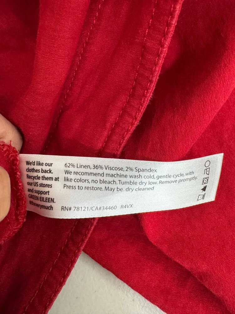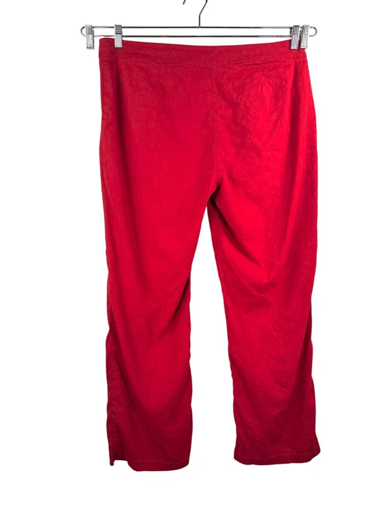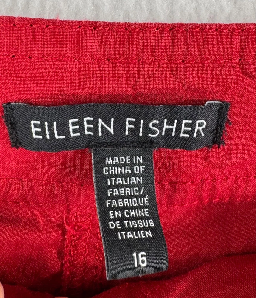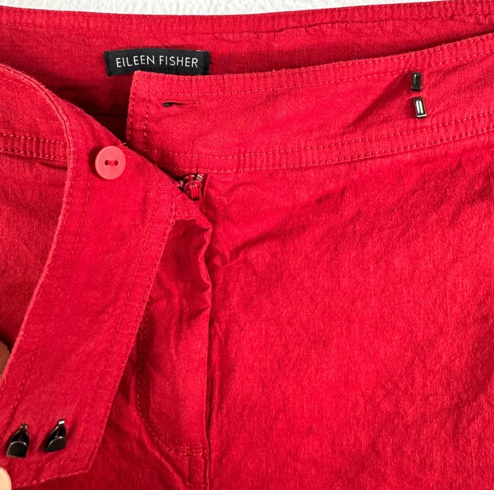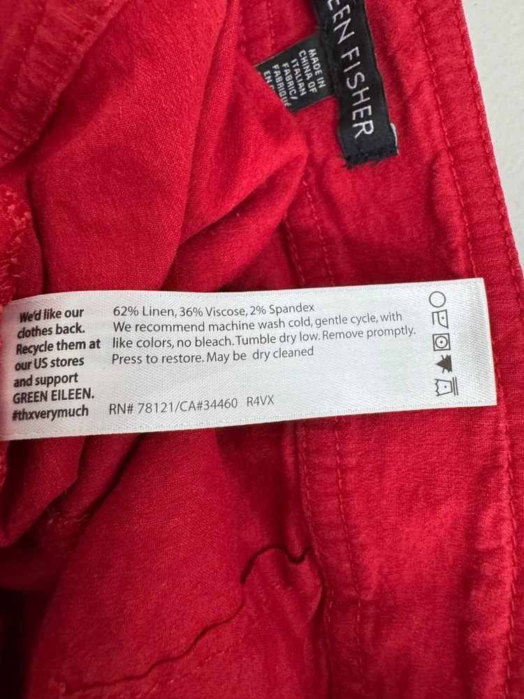 Good preowned / some wash wear Step up your style with these effortlessly chic Eileen Fisher wide-leg trousers. Color: Vibrant red for a bold yet timeless statement. Material: Linen blend with a hint of stretch for comfort and a flattering fit. (62% linen, 36% viscose, 2% spandex) Design: Wide-leg silhouette with a relaxed, flowy feel – perfect for a 90s-inspired, preppy look. Versatile Style: Dress them up with a blouse or keep it casual with a tee. - Has good stretch, high waist, wide leg style, pockets in front Flat lay: waist 19" Rise 11" Inseam 32" Leg Opening 10.2" linen, wide leg, high waist, flowy, preppy, chic, minimalist, bold, classic, work wear, money, stretchy, timeless, sophisticated, 90s PLEASE check all flat lay measurements and listings carefully BEFORE PURCHASE!I put in a lot of work into hand measuring and researching each items as best as I can! Thank you so much for your consideration! Please note that: RETURN SHIP FEE IS PAID BY THE BUYER! If you are not too familiar with flat lay measurements, I recommend taking a measurement of your own clothes that you feel comfortable and compare with the measurement I provide. For returns: The items MUST BE IN SAME CONDITION AS SOLD for full refund! We all don't like returns and let's work together to minimize! Please note that RETURNS ARE NOT ACCEPTED FOR NEW WITH TAG OR NEW WITHOUT TAG ITEMS!