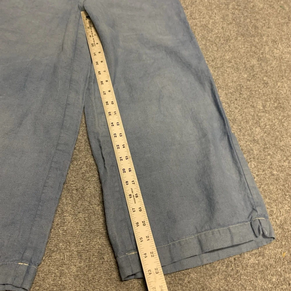 Eileen Fisher Womens Linen Casual Pants Size Large Wide Leg Blue