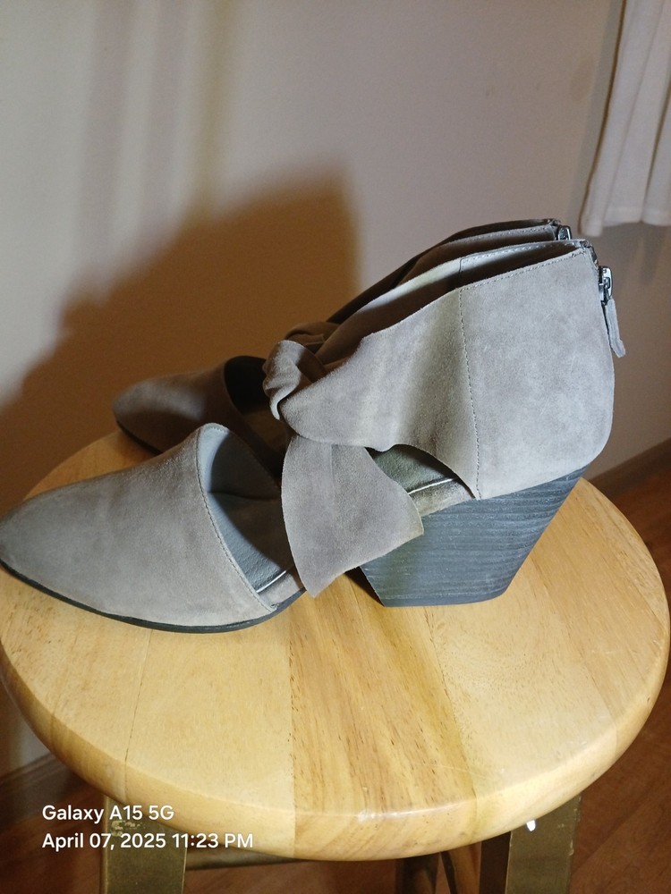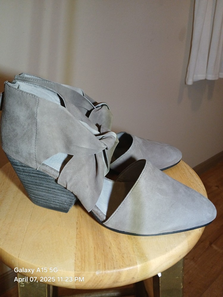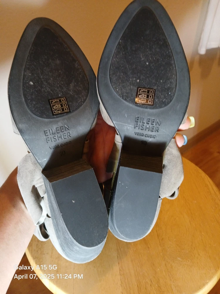 EU Shoe Size: 44 Type: Heel Features: Comfort, Ankle Strap, Stretch Brand: Eileen Fisher Upper Material: Leather Color: Gray Heel Height: Mid (2-2.9 in) Toe Shape: Almond Toe Theme: City, Going Out, Preppy Closure: Slip On Department: Women UK Shoe Size: 8 US Shoe Size: 10 Style: Strappy Heel Style: Block Pattern: Solid