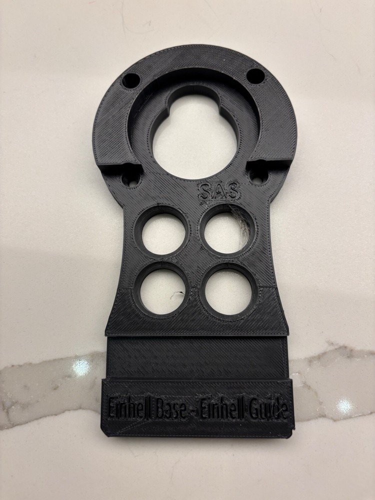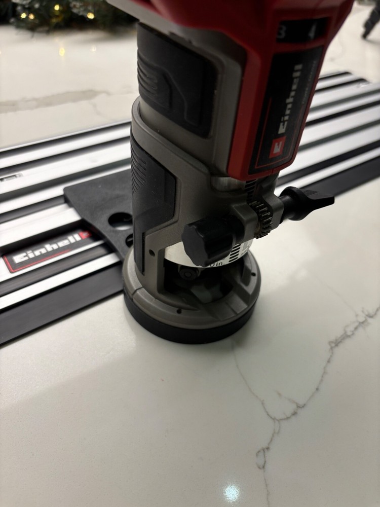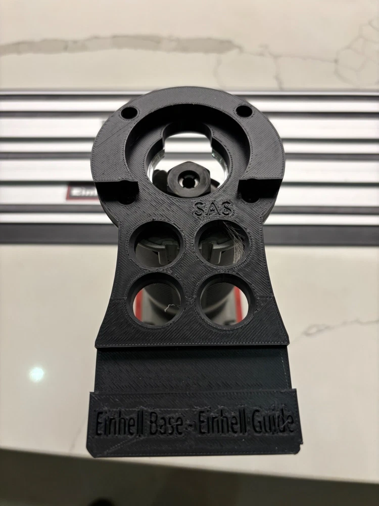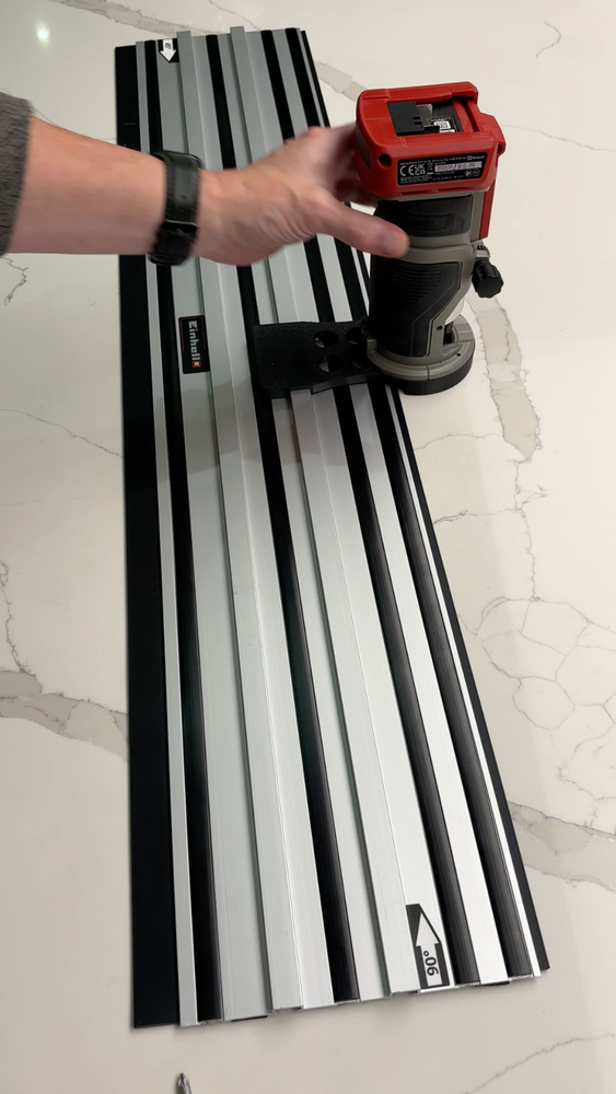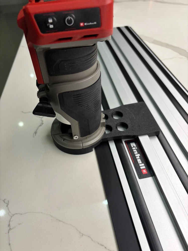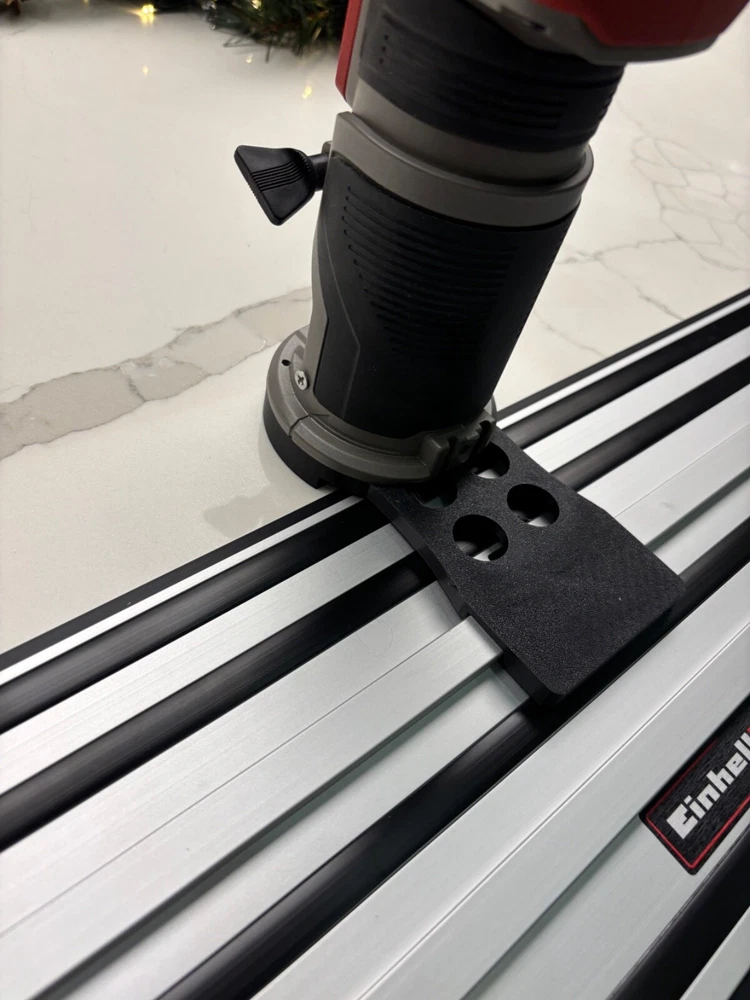 Einhell TP-ET 18 LI BL Router Guide Adaptor to fit Einhell Plunge Saw Track / Saw Guide Rail Features: Adapts Einhell Router/Trimmer (plunge base attachment ) to use on Einhell plunge saw guide rails Fits straight on to router base with the manufacturers screws. Easy to perform straight cuts Supplied with: Base plate Please note Guide rail and router not included 3d printed part Made from PLA Colour may vary Not an OEM product Made in the UK Please contact me when encountering issues when ordering, or go to www.plaworkshop.com