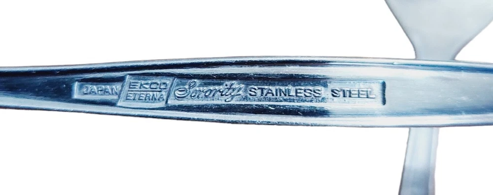 Custom Bundle:NoMaterial:Stainless SteelBundle Description:naType:fork spoon knifeCountry/Region of Manufacture:JapanHandle Material:Stainless SteelSet Includes:Fork, Knife, Spoongtin13:Does not applyMPN:naCountry/Region of Origin:JapanPattern:SororityUPC:Does not applyColor:SilverDepartment:AdultsBrand:EKCO