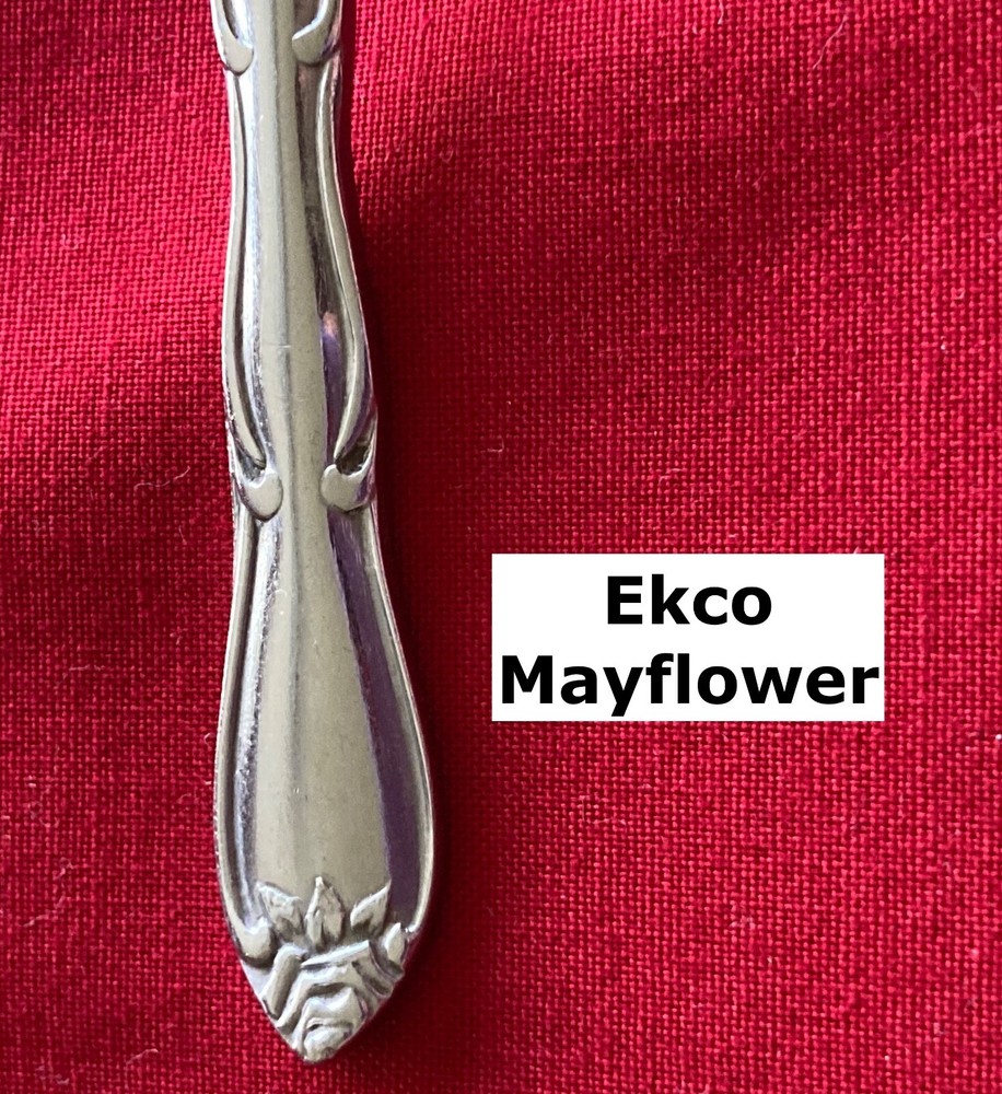 Manufacturer: Ekco Pattern: Mayflower Type: Stainless Steel Piece: Teaspoon Length: 6"